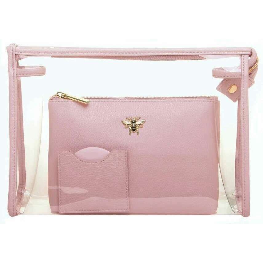 • 1 Klarer Reisekoffer, 1 Reißverschlussbeutel, 1 runder kompakter Spiegel, Honigbiener Verzierung