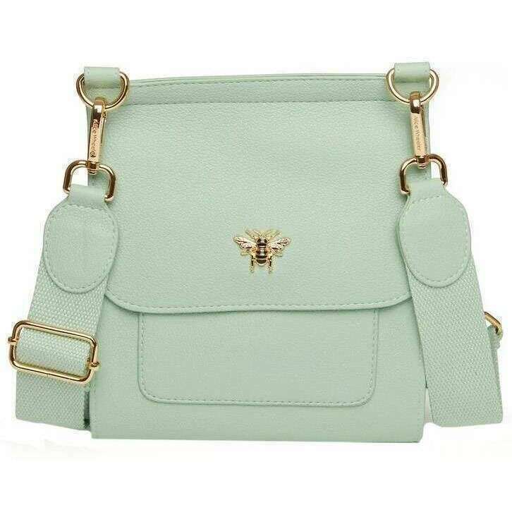 Die Designerin Alice Wheeler London hat Ihnen die 100% vegane Kunstledertasche dieser Frauen mit Pastellminztönen gebracht. Es misst 18 cm (Höhe) x 20 cm (Breite) x 12 cm (Tiefe). Alle Taschen sind in Alice Wheeler London Verpackung ausgestattet. Die Alice Wheeler London Bloomsbury Crossbody Bag - Pastel Mint macht eine atemberaubende und stilvolle Alltagstasche oder wird Ihr Abendoutfit bei einer formelleren Veranstaltung aussprechen. Ausgestattet mit einem verstellbaren Kreuzkörpergurt können Sie eine Länge finden, die Ihnen am besten zum bequemen Tragen passt. Der Bloomsbury bietet einen großen Hauptabschnitt und ist mit einem Klappen- und Magnetverschlussverschluss befestigt. Das legendäre und elegante Hummel -Bienen -Logo rundet dieses wunderschöne Design sowie das Namen Branding auf der Rückseite ab.