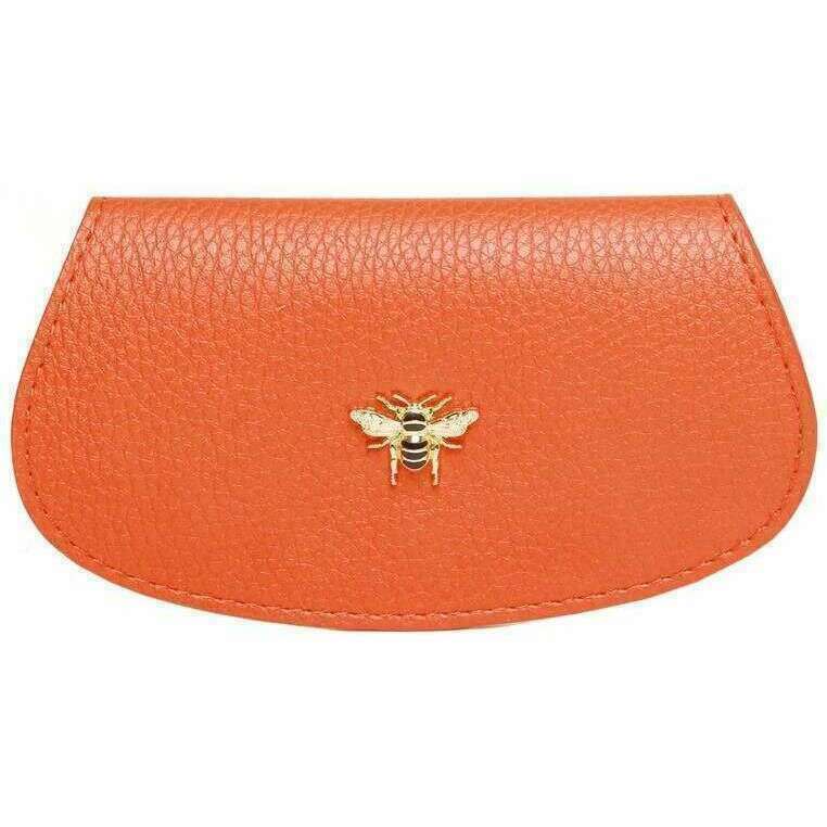 This women's glasses case by the brand Alice Wheeler London is made from 100% vegan faux leather and is showcased in orange. It measures 7.5cm(height) x 13.5cm(width). All the accessory cases come complete with alice wheeler packaging. The Alice Wheeler London Glasses Case - Orange will level up your glasses game, keeping them safe and protected in style. The sleek and smooth design will add elegance to your everyday. This convenient glasses case is perfect for keeping in your bags without them getting scratched or broken or just keeping them secure in your home. This is a must have if you frequently wear glasses and want a chic way to protect them. Completing this case is the beautifully iconic bee embellishment adorned the front of it.