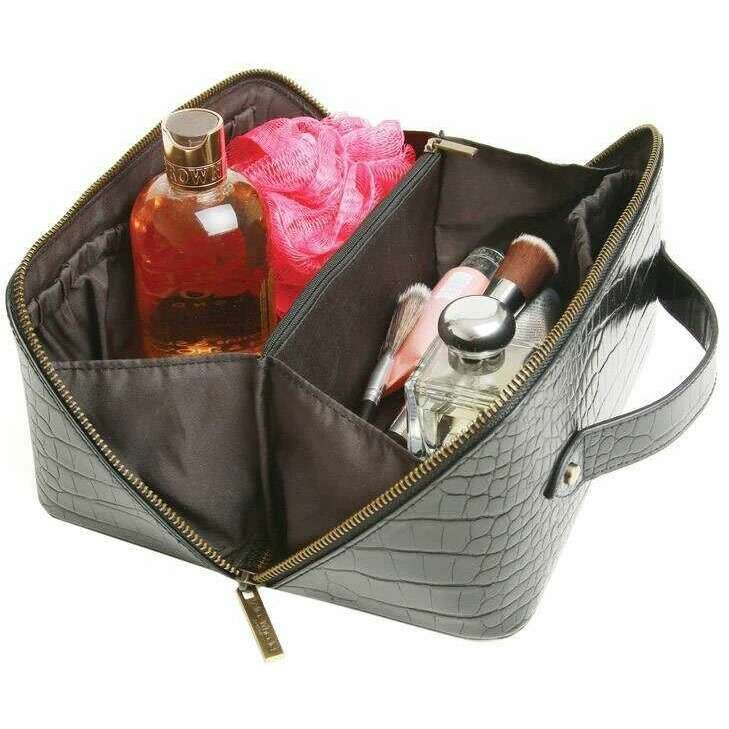 In der Luxuszug der Frauen von Alice Wheeler London wird es aus 100% veganem Kunstleder in einer schwarzen Croc -Farbe hergestellt. Es misst 12 cm (Höhe) x 24 cm (Breite) x 12 cm (Tiefe). Alle Taschen sind in Alice Wheeler London Verpackung ausgestattet. Die Luxus -Zugkoffer von Alice Wheeler London - Black Croc ist die perfekte Reisekoffer für Toilettenartikel, wenn Sie weggehen oder für Ihre Make -up- und Schönheitsprodukte aufbewahren. Das Luxusdesign verfügt über einen Reißverschluss und öffnet sich zu einem großen Hauptfach mit inneren Taschen für Ihre kleineren Wesentlichen. Der obere Griff macht es mühelos zu transportieren, und das stilvolle Branding auf beiden Seiten verleiht einen eleganten Touch.