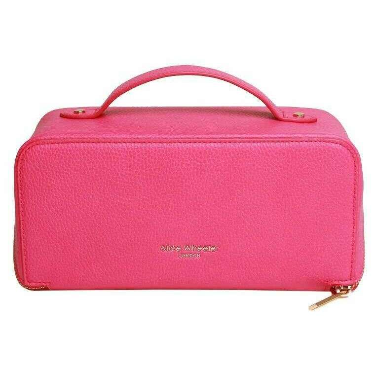 Das Luxuszug der Frauen von der Marke Alice Wheeler London besteht aus 100% veganem Kunstleder und wird in Pink gezeigt. Es misst 12 cm (Höhe) x 24 cm (Breite) x 12 cm (Tiefe). Alle Taschen sind in Alice Wheeler London Verpackung ausgestattet. Die Luxus -Zugkoffer von Alice Wheeler London - Pink ist die perfekte Reisekoffer für Toilettenartikel, wenn Sie weggehen oder für Ihre Make -up- und Schönheitsprodukte aufbewahren. Das Luxusdesign verfügt über einen Reißverschluss und öffnet sich zu einem großen Hauptfach mit inneren Taschen für Ihre kleineren Wesentlichen. Der obere Griff macht es mühelos zu transportieren, und das stilvolle Branding auf beiden Seiten verleiht einen eleganten Touch.
