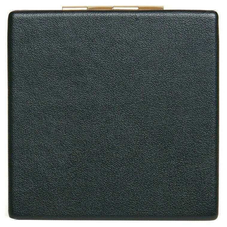 Dieser schwarze Frauen -Wiener Mirror Compact wurde von der Marke Alice Wheeler London zu Ihnen gebracht und besteht aus 100% Nappa -Finish veganer Kunstleder. Es misst 7,3 cm (Höhe) x 7,3 cm (Breite). Alle Kompakte sind mit Alice Wheeler -Verpackung ausgestattet. Der Alice Wheeler London Wien Mirror Compact - Schwarz ist das perfekte Accessoire, das mit Ihnen in Ihrer Handtasche mit sich herumtragen kann. Das Alice Wheeler Branding ist auf die Vorderseite eingebettet. Im Inneren befindet sich ein Spiegel mit einem doppelgoldfarbenen Metallrahmen, der ideal für die täglichen Ausbesserungen ist.