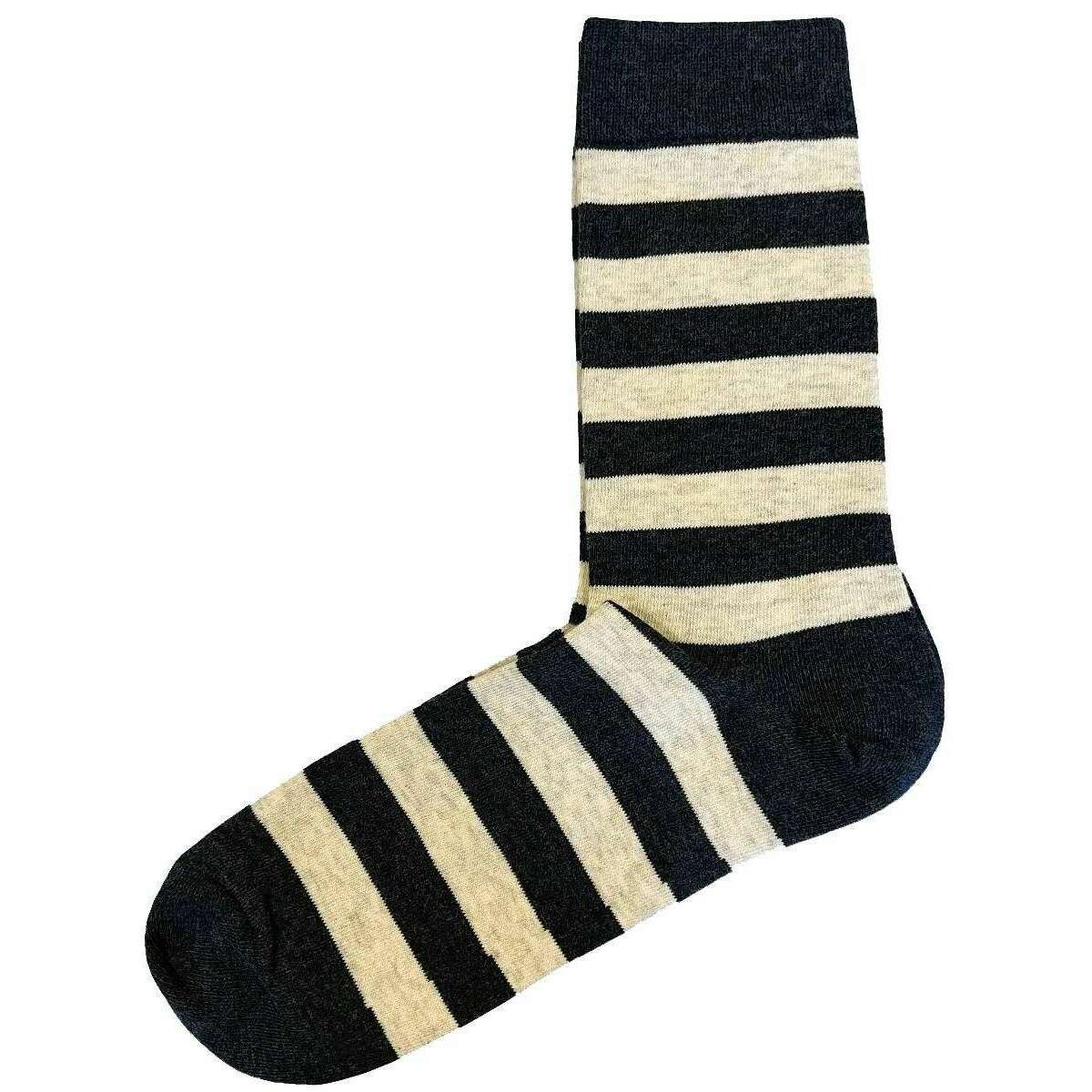 Bassin and Brown Cubillas Hooped Stripe Socken – Grau Marineblau/Marmoriert Weiß