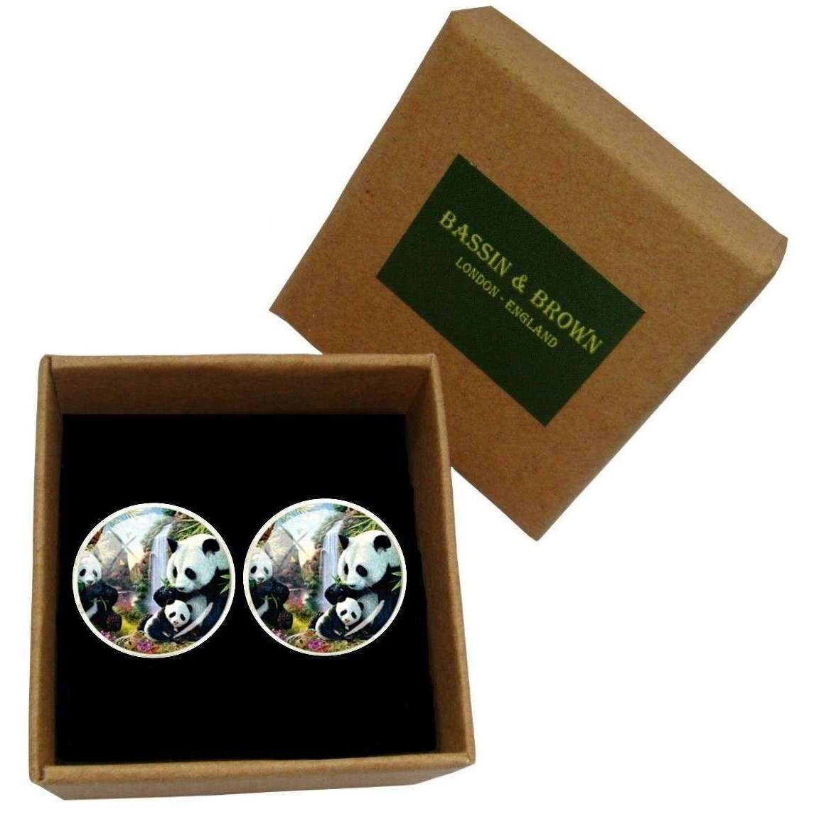 Bassin und braune Pandabären Manschettenknöpfe - Schwarz/Weiß