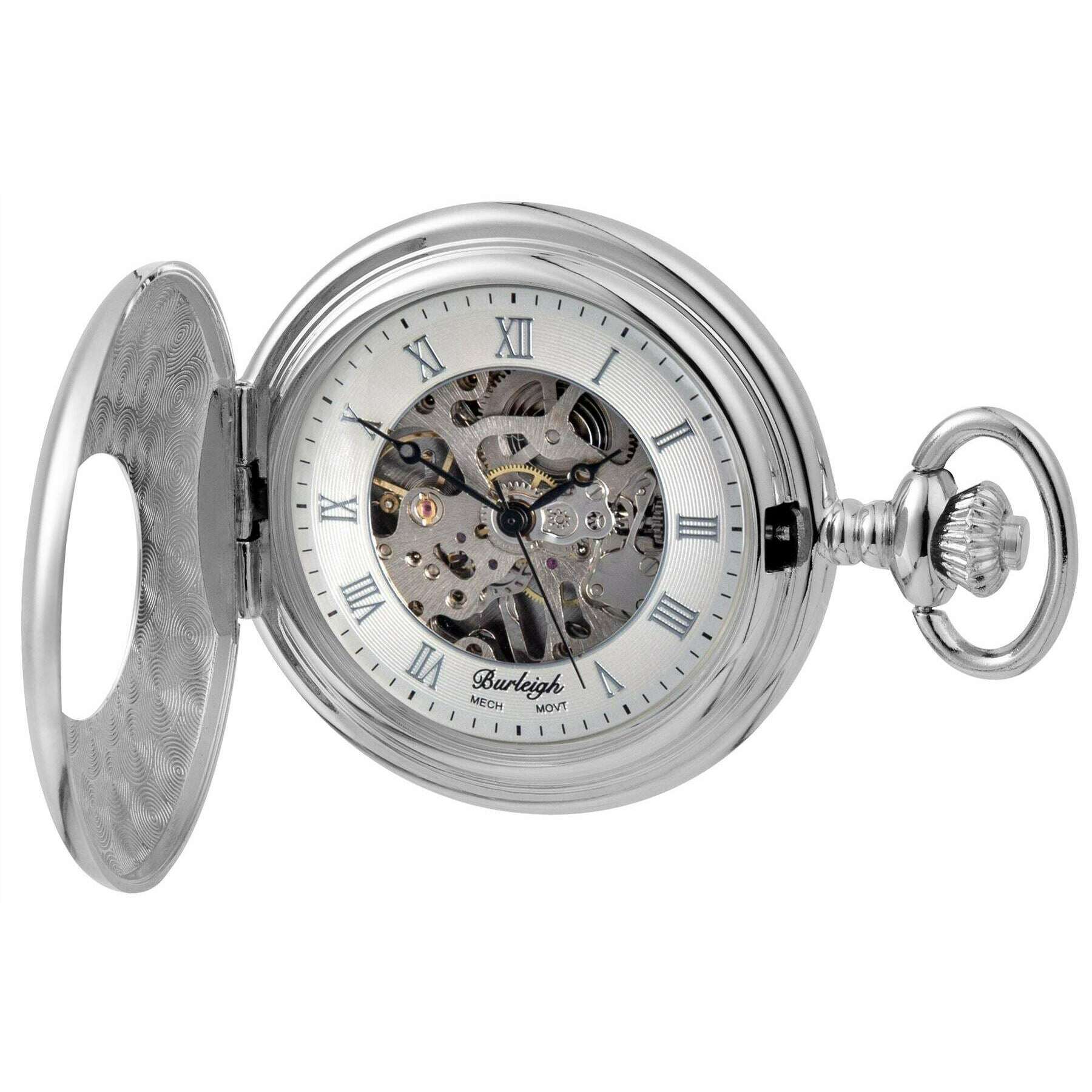 Burleigh Mechanische Taschenuhr Half Hunter – Chromsilber