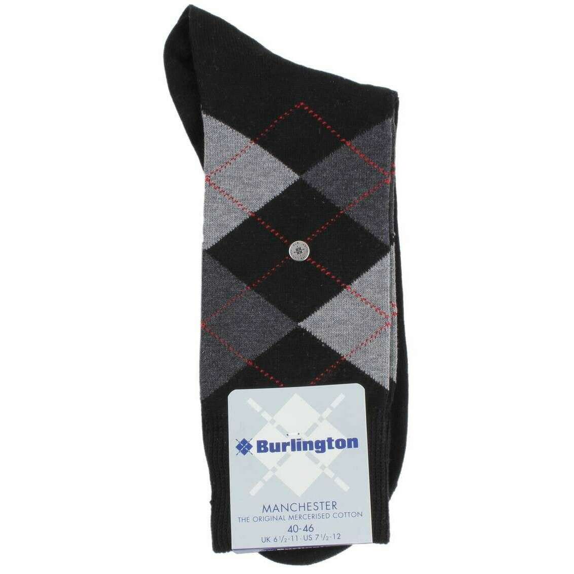 Burlington Argyle mercerisierte Baumwollsocken - schwarz/grau