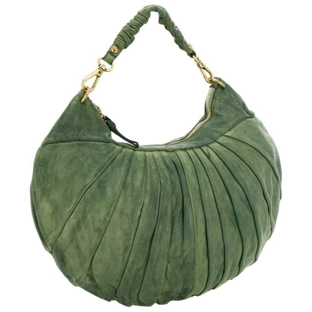 Campomaggi Luna Extra große plissierte Umhängetasche – Seegrün
