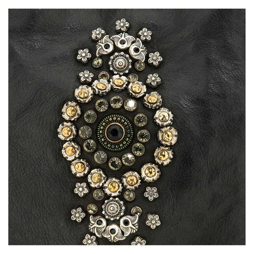 Designer Campomaggi hat Ihnen diese Damentasche aus 100 % pflanzlich gegerbtem Rindsleder in Schwarztönen präsentiert. Es misst 29 cm (Höhe) x 28 cm (Breite) x 0,5 cm (Tiefe). Campomaggi hat diese Nora Bella di Notte Umhängetasche in Italien hergestellt. Alle Taschen werden komplett in einer Campomaggi-Verpackung geliefert. Die Campomaggi Nora Bella Di Notte Umhängetasche – Schwarz verbindet italienische Handwerkskunst mit eleganten, ausdrucksstarken Details. Hergestellt aus pflanzlich gegerbtem Rindsleder, gewinnt es mit der Zeit an Charakter und behält gleichzeitig den charakteristischen handwerklichen Charme der Marke bei. Die Vorderseite ist mit einer raffinierten Mischung aus Nieten und Strasssteinen verziert, die der dezenten Silhouette einen Hauch von nächtlichem Glanz verleihen. Die Tasche lässt sich sicher mit einem Druckknopfverschluss schließen und verfügt über ein mit Stoff gefüttertes Innenleben, das auf Alltagstauglichkeit ausgelegt ist. Im Inneren verfügt es über eine geschlossene Innentasche und einen speziellen Handyhalter, sodass Sie unterwegs problemlos organisiert bleiben können. Für ein vielseitiges Styling ist die Nora Bella Di Notte mit einem abnehmbaren und verstellbaren Umhängeriemen ausgestattet, der einen mühelosen Übergang vom Alltags- zum Abendoutfit ermöglicht. Diese in Italien handgefertigte Umhängetasche ist ein wunderschöner Ausdruck von Handwerkskunst, Funktionalität und dekorativen Details, perfekt für alle, die subtilen Glamour und zeitloses Design schätzen.