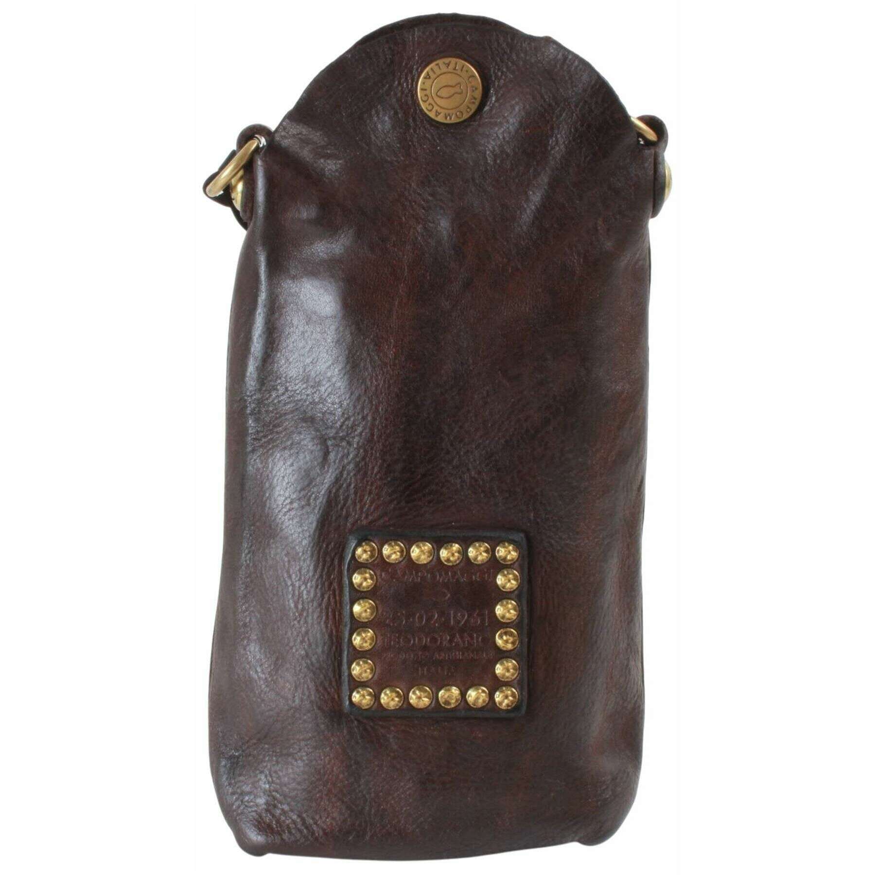 Diese Unisex-Handytasche „Virna“ besteht aus 100 % pflanzlich gegerbtem Rindsleder, hat eine braune Farbe und stammt von der Marke Campomaggi. Es misst 18 cm (Höhe) x 10 cm (Breite) x 4,5 cm (Tiefe). Campomaggi hat diese Virna-Handytasche in Italien hergestellt. Alle Taschen werden komplett mit einem Campomaggi-Staubbeutel geliefert. Die Campomaggi Virna Handytasche – Dunkelbraun ist eine stilvolle Alternative zu Ihrer typischen Handytasche, da Sie die Wahl haben, sie zu tragen, anstatt sie zu halten. Es sichert Ihr Telefon im Inneren mit einem Druckknopfverschluss und der Riemen kann auf die passende Länge eingestellt werden. A Auf der einen Seite ist ein wunderschön geprägtes Bild zu sehen, während auf der anderen Seite ein verzierter Aufnäher mit Branding zu finden ist.