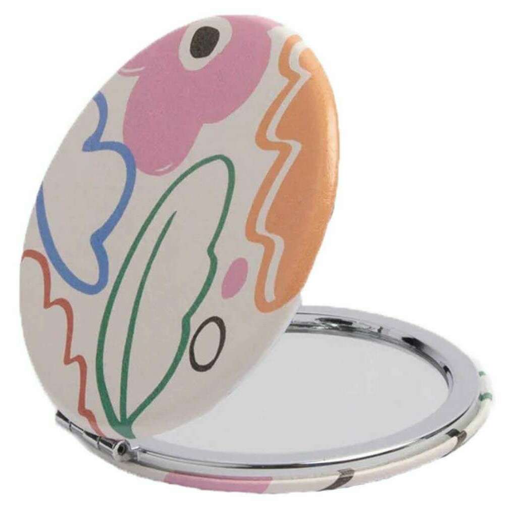 Caroline Gardner Abstrakter botanischer runder Taschenspiegel – Mehrfarbig