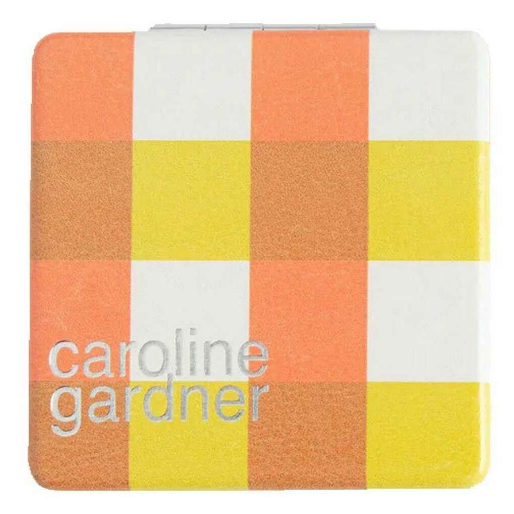 Caroline Gardner Karierter quadratischer Taschenspiegel – Rosa/Weiß/Orange