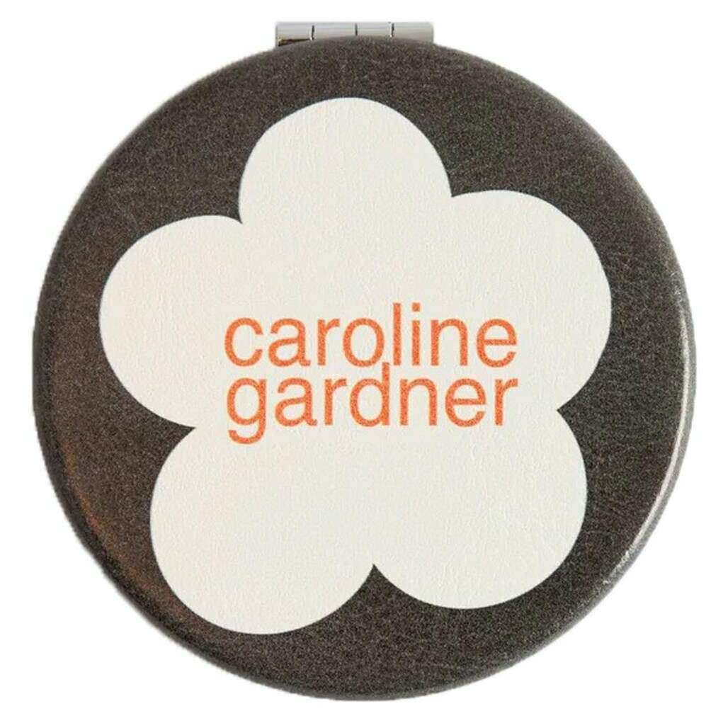 Caroline Gardner Flower Runder Taschenspiegel – Anthrazitschwarz