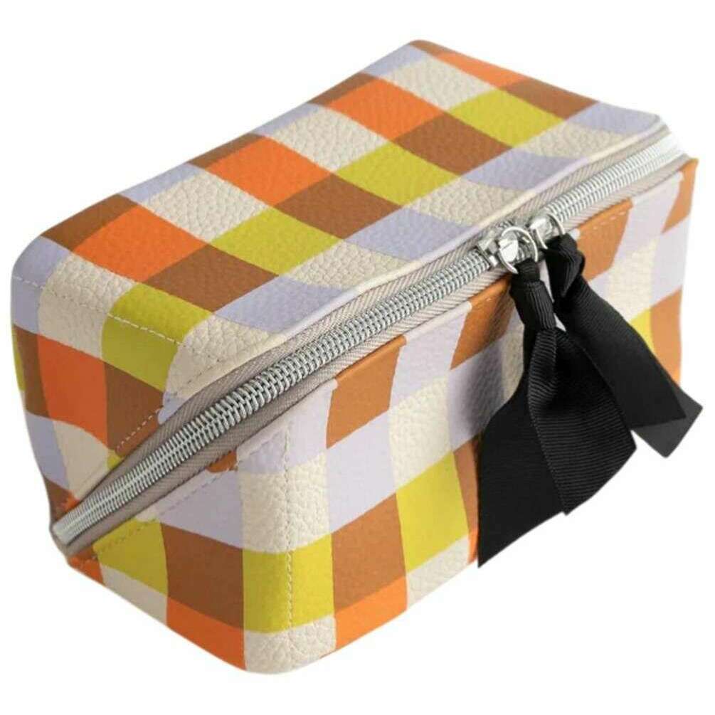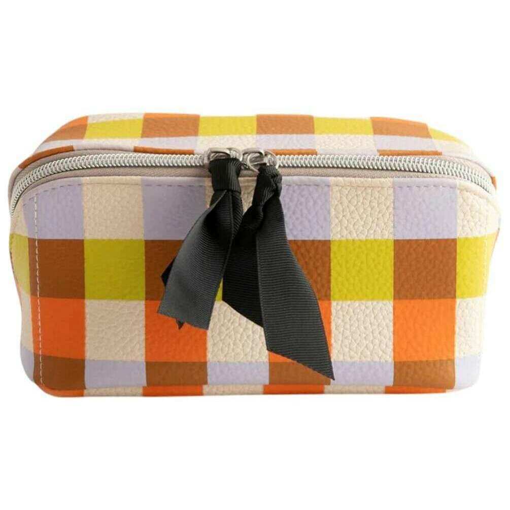Caroline Gardner Multi Check Diagonal Kulturbeutel – Weiß/Lila/Orange