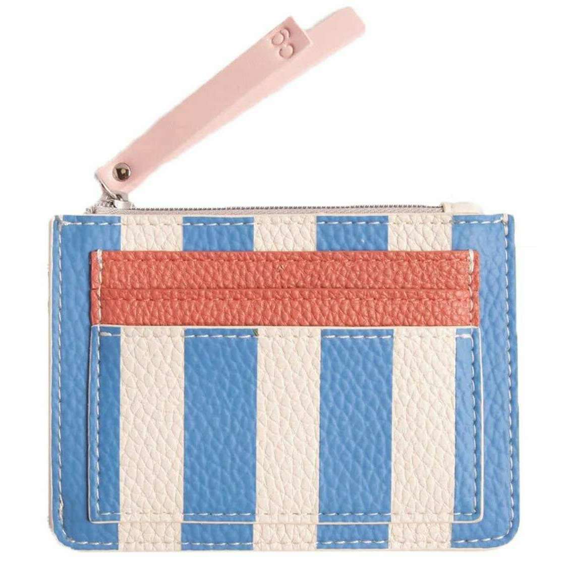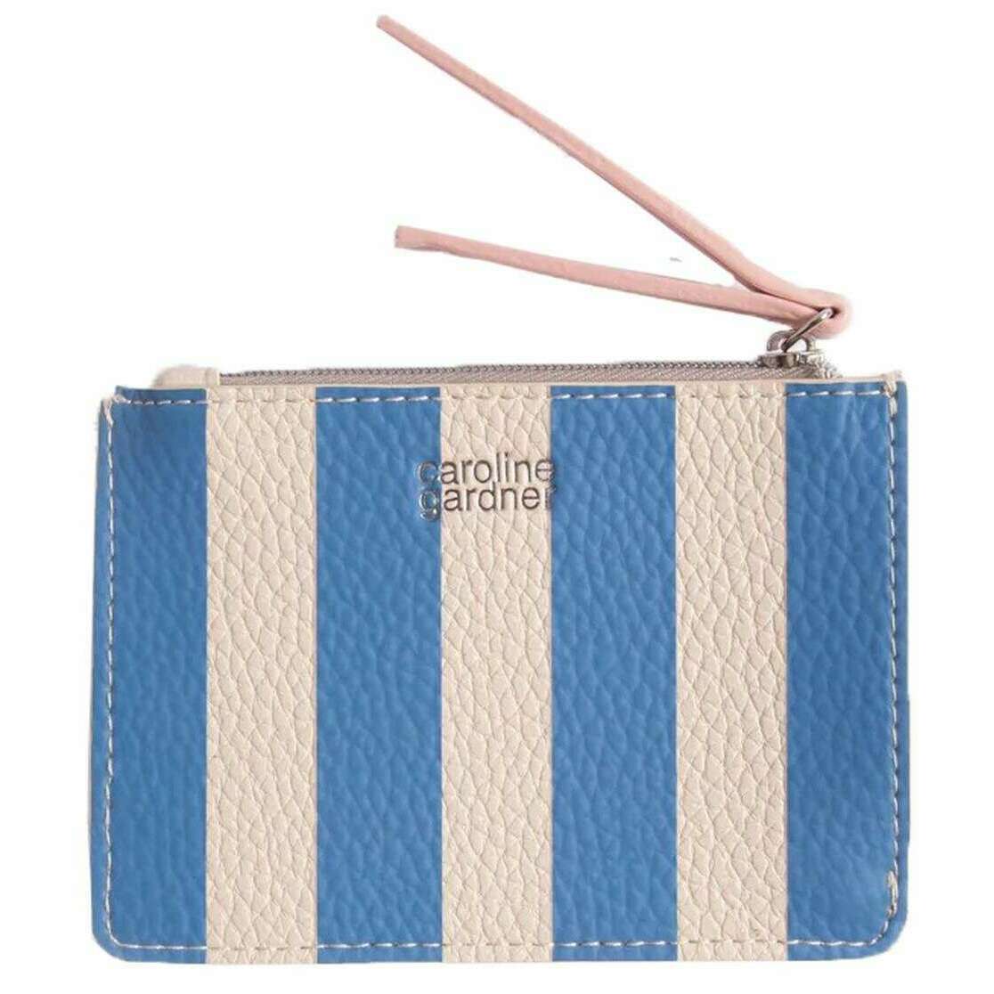 Caroline Gardner Stripe Short Patch Geldbörse – Blau/Creme/Pink
