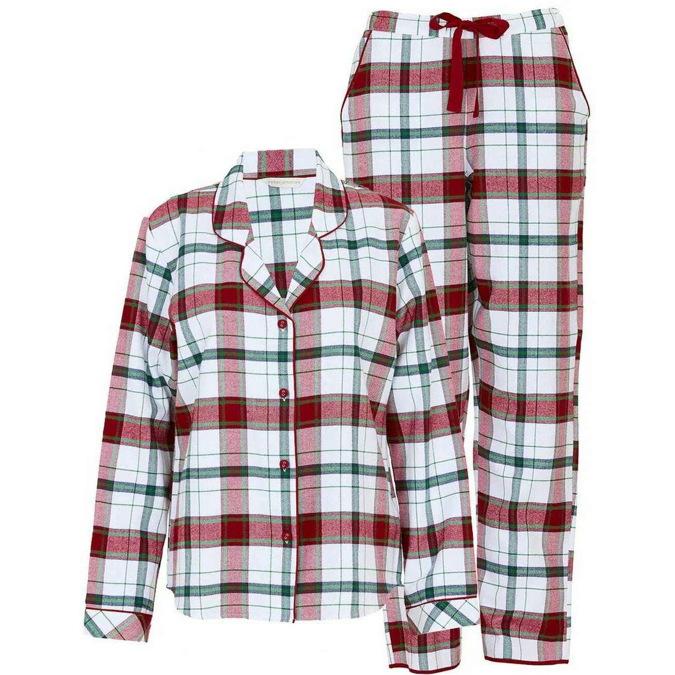 Cyberjammies Blaze Pyjama-Set mit gebürstetem Karomuster – Rot/Weiß/Grün