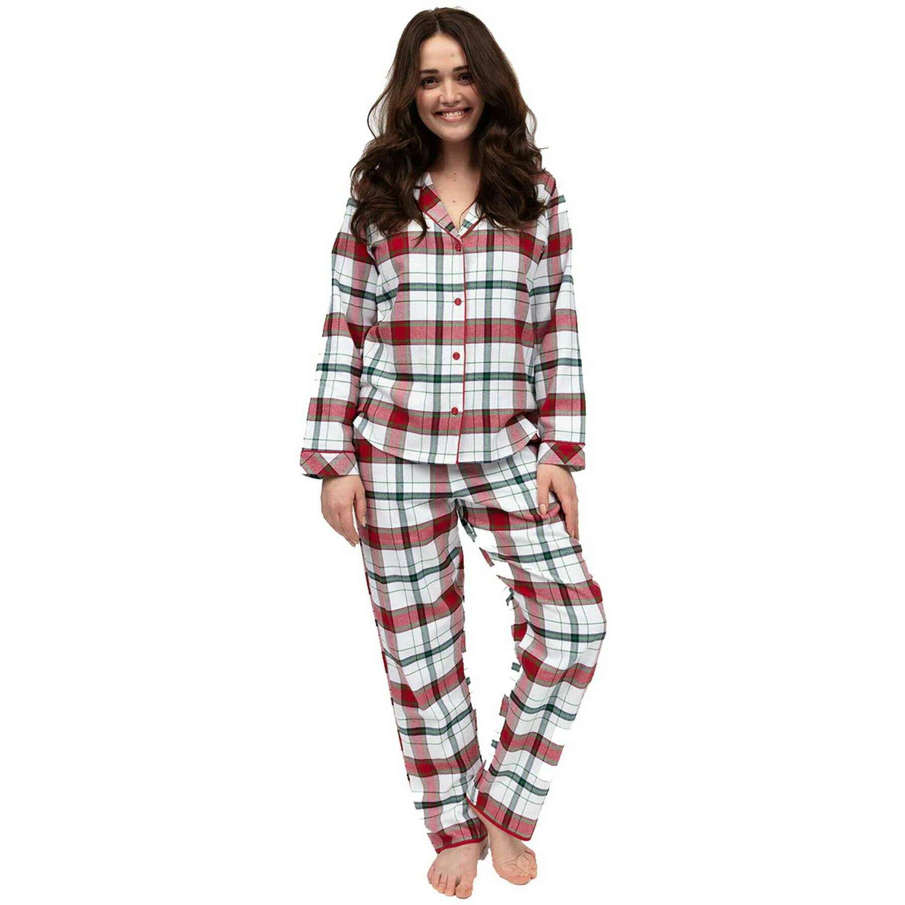 Dieses Damen-Pyjama-Set mit gebürstetem Blaze-Karomuster der Marke Cyberjammies besteht aus 100 % Baumwolle und ist in Rot gehalten. Auch die rot/weiß/grünen Pyjamas sind in einem Karomuster gestaltet. Es wird empfohlen, sie auf links in der Maschine zu waschen, nicht einzuweichen und mit ähnlichen Farben zu waschen, um diese Pyjamas in gutem Zustand zu halten. Alle Pyjamas werden komplett mit Cyberjammies-Tags geliefert. Das Cyberjammies Blaze Brushed Check Pyjama-Set – Rot/Weiß/Grün ist ein Paar, das Sie Tag und Nacht in Ihrem gemütlichen Zuhause immer tragen möchten. Das schöne, karierte Design bietet klassischen Charakter, während sich das wunderschöne Baumwollmaterial luxuriös auf der Haut anfühlt. Das Hemd mit Knopfleiste verleiht Ihnen zeitlosen Stil, während die Hose mit einem Kordelzug für eine bequeme Passform ausgestattet ist.