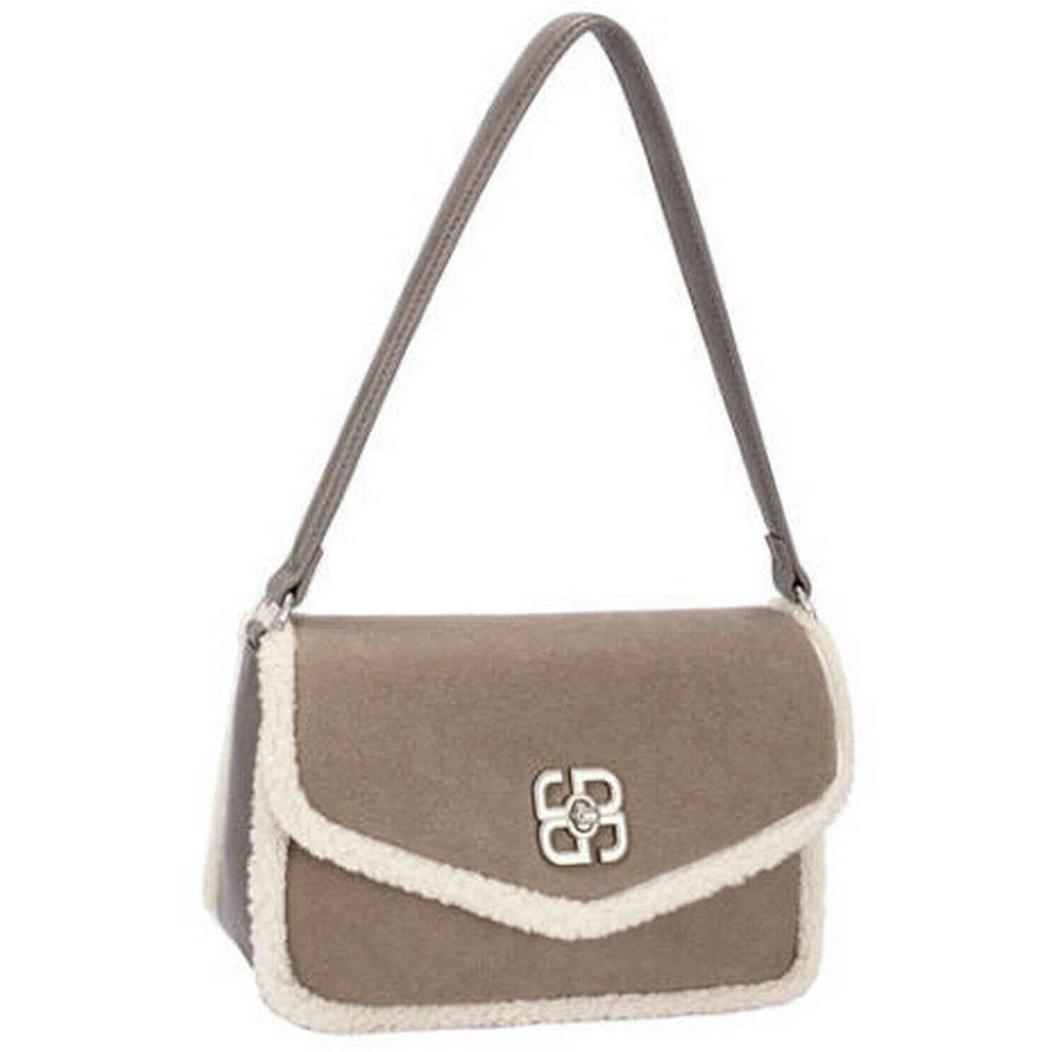 David Jones Faux Shearling Flap Umhängetasche – Fungi Brown