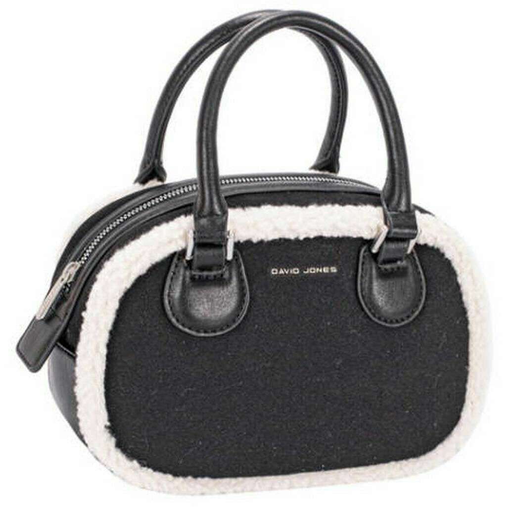 • Verstellbarer/abnehmbarer Riemen, 2 Tragegriffe, Innenreißverschluss und offene Taschen, Reißverschluss oben, Kunstfellbesatz, David Jones-Namenslogo
