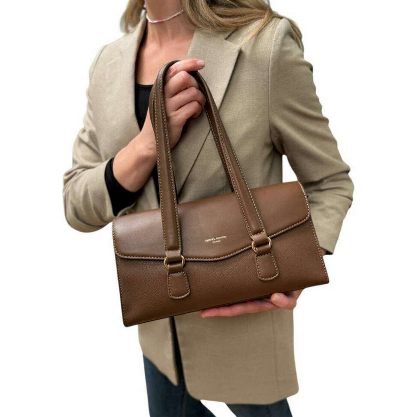 David Jones Long Half Flap Short Shoulder Bag – Kakaobraun