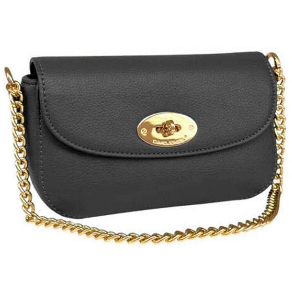 Diese Gelegenheits-Umhängetasche mit halber Klappe für Damen wird von der Marke David Jones in schwarzer Farbe hergestellt und besteht aus 100 % Polyurethan. Es misst 13 cm (Höhe) x 20 cm (Breite) x 6 cm (Tiefe). Alle Taschen werden komplett mit einer David-Jones-Verpackung geliefert. Die David Jones Occasion Half Flap Shoulder Bag – Schwarz ist die perfekte Wahl für Anlässe, denen Sie einen raffinierten und mädchenhaften Touch verleihen möchten. Der goldene Kettenriemen verleiht einen teuren Look und eignet sich perfekt zum Verschönern jedes Outfits, für formelle Anlässe oder einfach nur für einen Drink mit den Mädchen, während die Klappe durch einen typischen Drehverschluss aus Metall an Ort und Stelle gehalten wird, was der Tasche einen einzigartigen, herausragenden Look verleiht. Der Reißverschluss und die offene Innentasche sorgen für Ordnung und einfachen Zugriff auf Ihre kleineren wertvollen Gegenstände. Auch wenn diese Tasche klein aussieht, täuscht sie, denn sie bietet Platz für alle wichtigen Dinge, die Sie unterwegs brauchen.