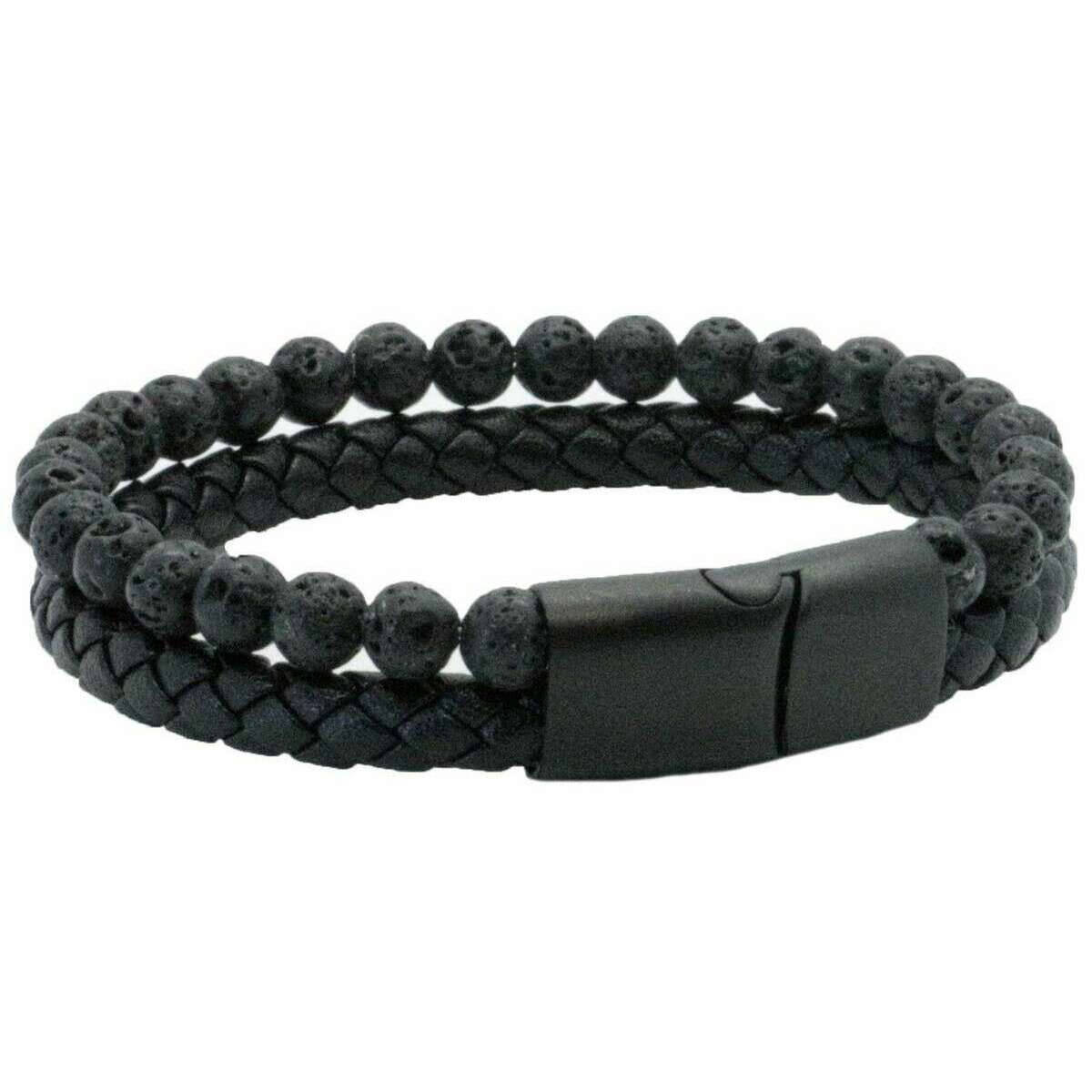 David Van Hagen Perlen- und Lederarmband – Schwarz