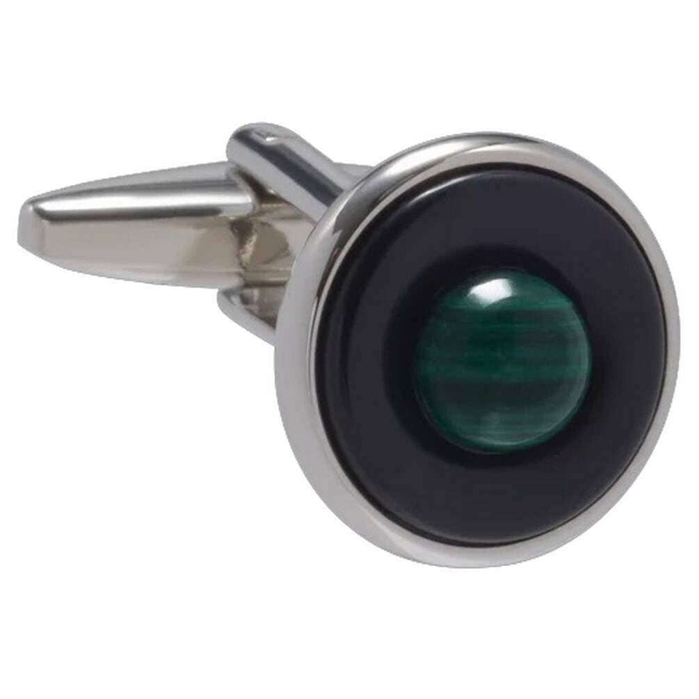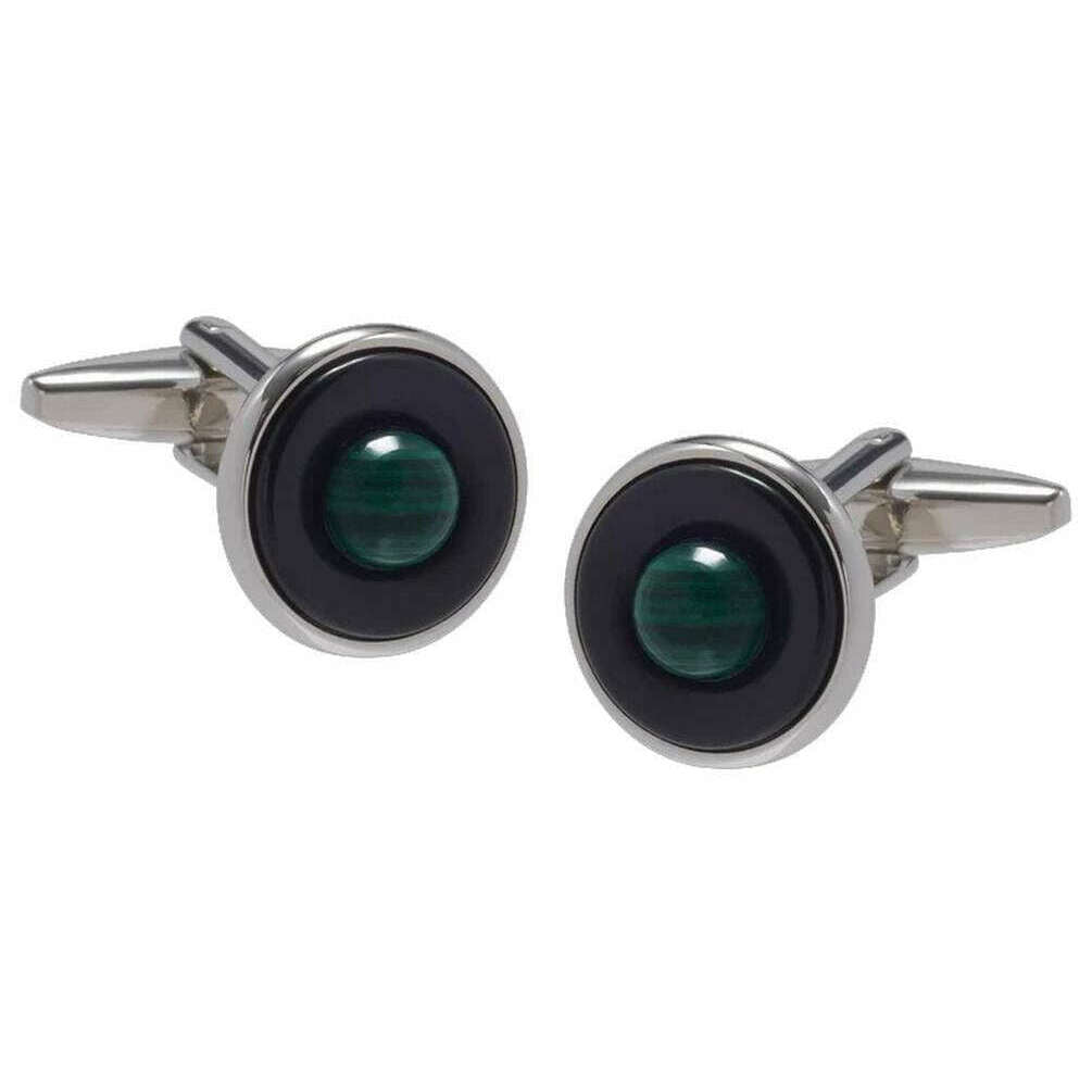 • Inspiriert von den Ringen des Saturn, grüner Malachit-Cabochon in der Mitte, Onyx-Stein in der Mitte, natürliche Halbedelsteine, Standard-Manschettenknopf-Bascule