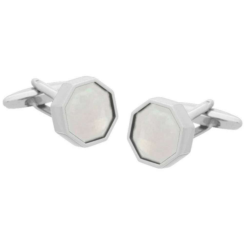 David Van Hagen Achteckige Manschettenknöpfe aus Perlmutt – Weiß/Silber
