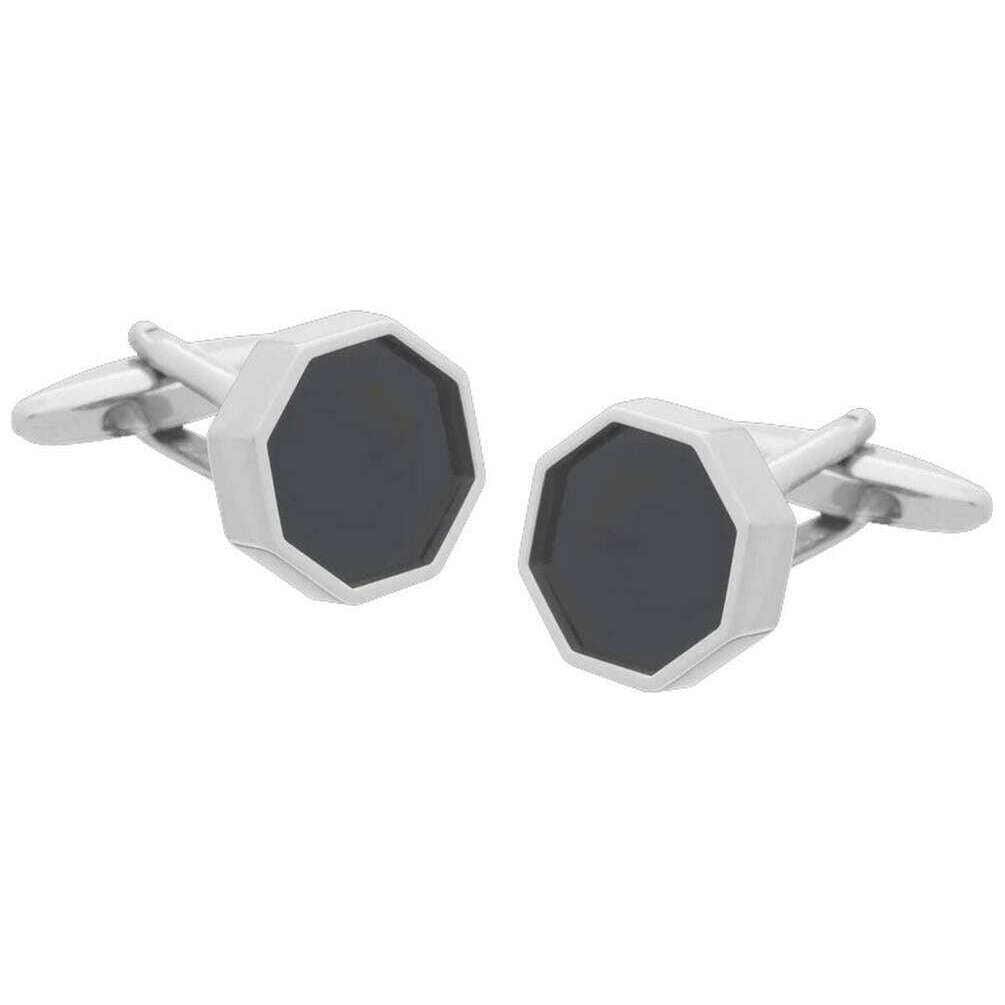 David Van Hagen Achteckige Manschettenknöpfe aus Onyx – Schwarz/Silber