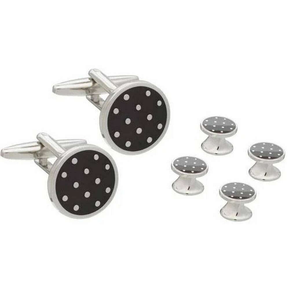 David Van Hagen Set mit gepunkteten Nieten und Manschettenknöpfen – Schwarz/Silber