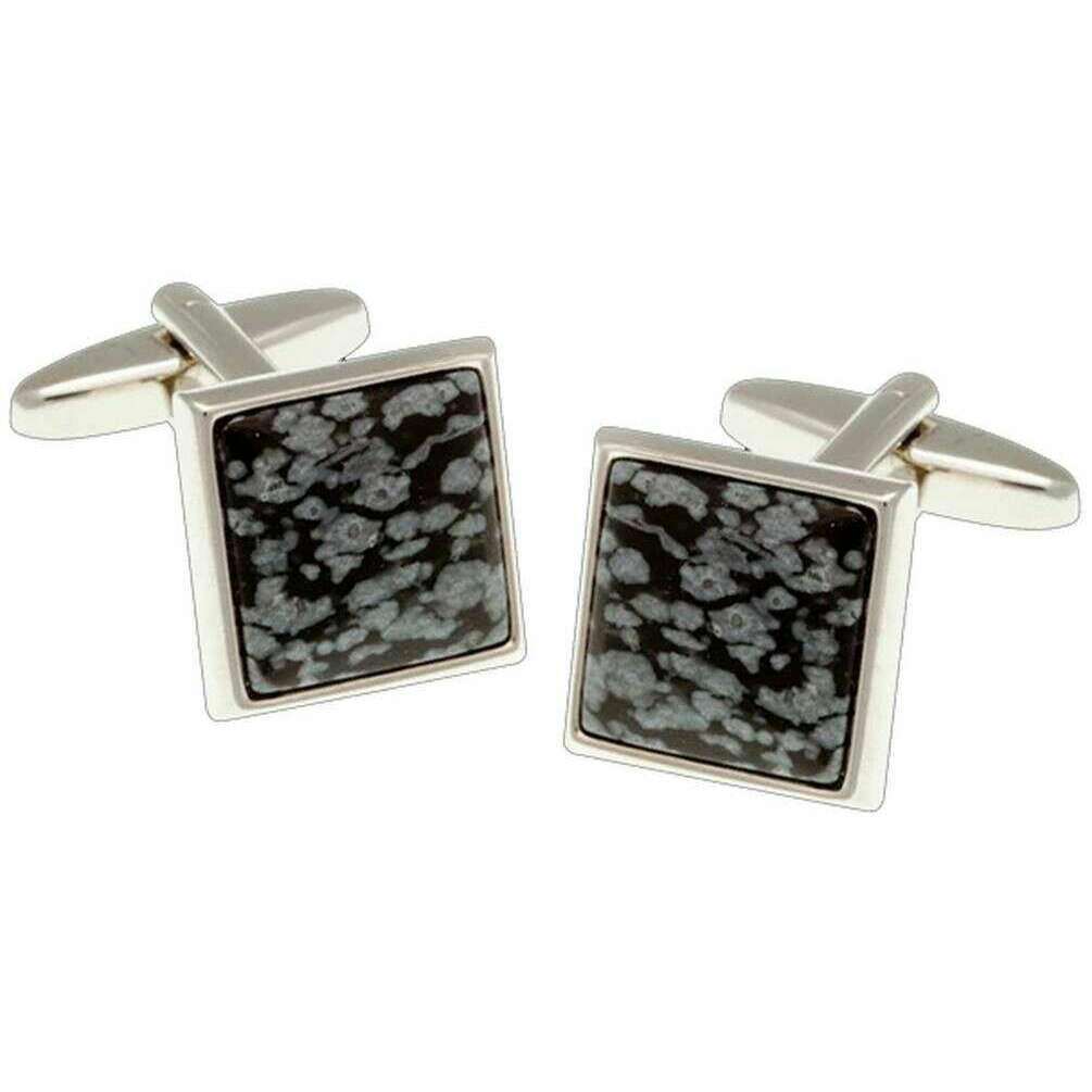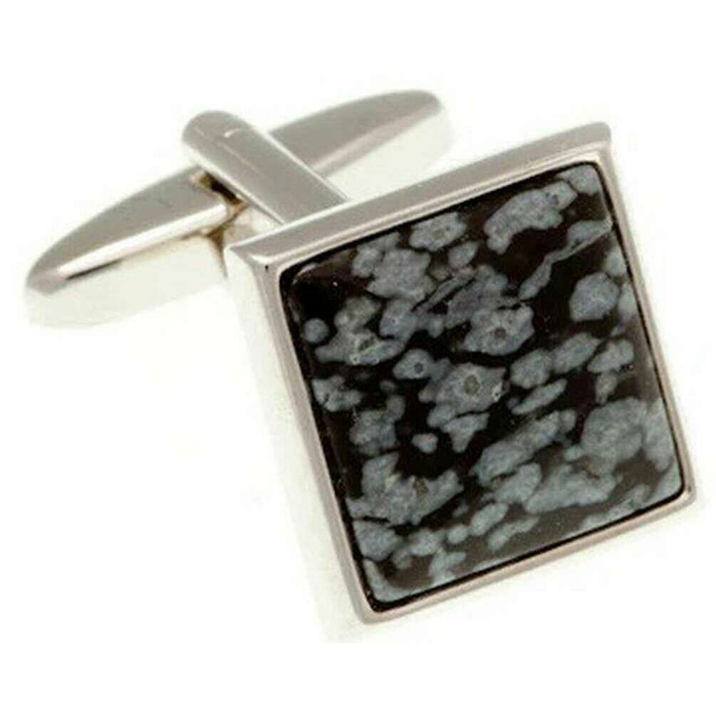 • Halbedelstein mit Schneeflocken-Cabochon, polierte Kanten, Standard-Manschettenknopf-Bascule