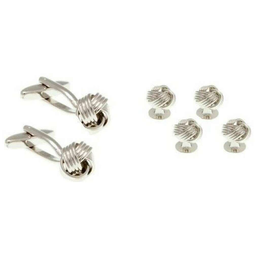 David Van Hagen Set aus Nieten und Manschettenknöpfen mit gewebten Knoten – Silber
