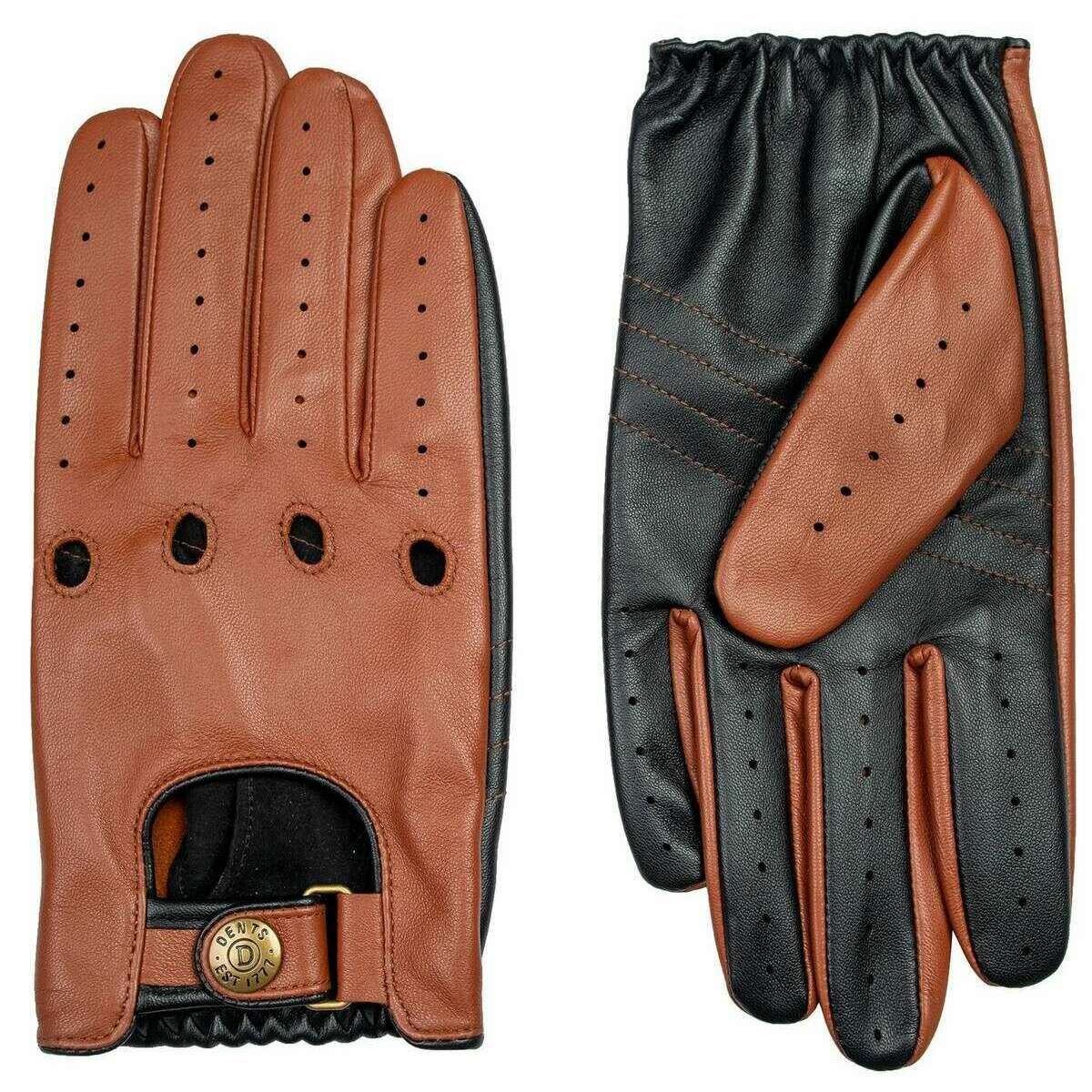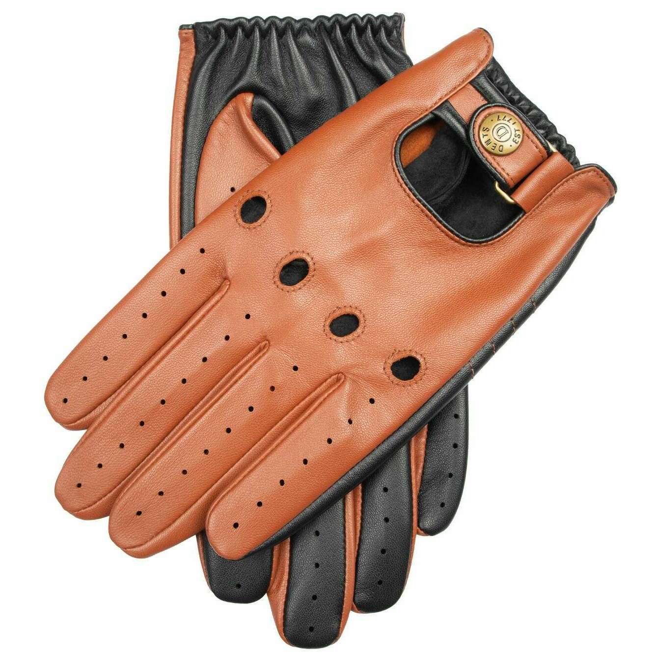 Dents Aintree Zweifarbige Leder-Fahrhandschuhe – Cognacbraun/Schwarz