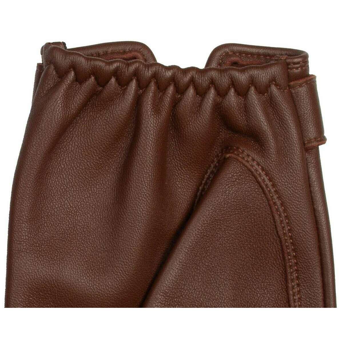 Perfekt für Männer sind diese Dents Fahrhandschuhe aus englischbraunem Brooklands-Leder, sie bestehen ebenfalls aus 100 % Haarschafsleder. Auch die englischbraunen Handschuhe sind in einem schlichten Muster gestaltet. Alle Handschuhe werden komplett mit Dellenetiketten geliefert. Der Dents Die Leder-Fahrhandschuhe von Brooklands – English Tan – unterscheiden sich von den üblichen Fahrhandschuhen, da sie nicht über die ausgeschnittene Rückseite verfügen, was ihnen ein einzigartiges Finish verleiht. Die Handschuhe verfügen über aufwendige Details wie perforierte Löcher in den Fingern und Handflächen, Knöchellöcher und Innennahtnähte für ein sauberes Finish. Es verfügt über eine in der Mitte schließende Handgelenkschlaufe mit elastischen Handgelenken und Dents Verschlussknopf sorgt für einen sicheren und bequemen Sitz des Trägers.
