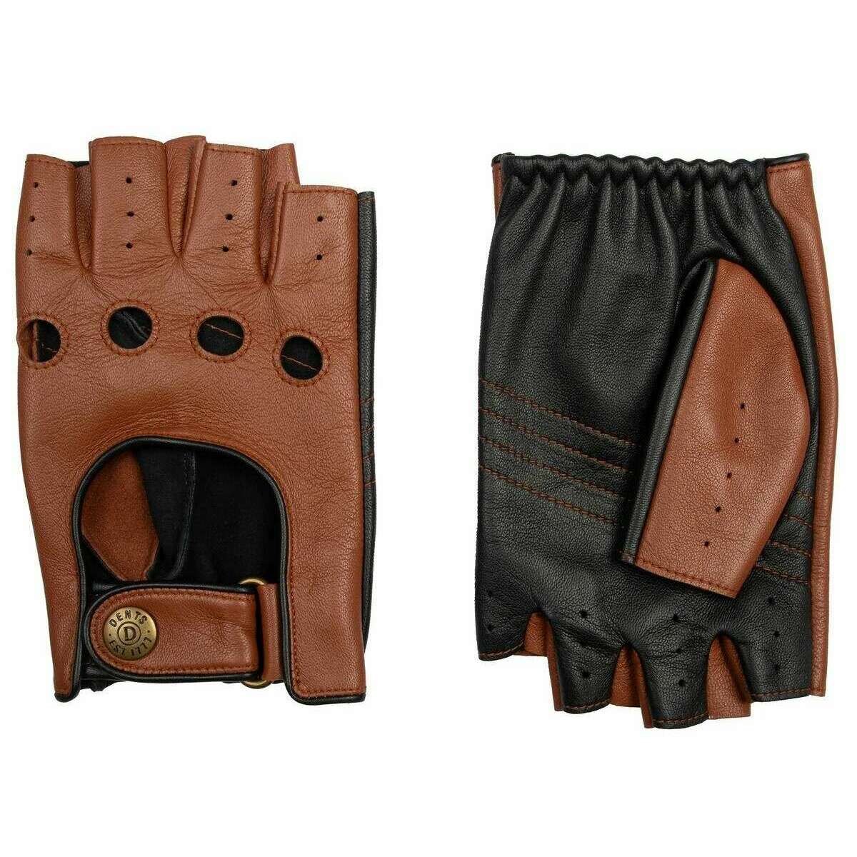 Dents Fingerlose Cadwell-Fahrerhandschuhe aus zweifarbigem Leder – Cognacbraun/Schwarz