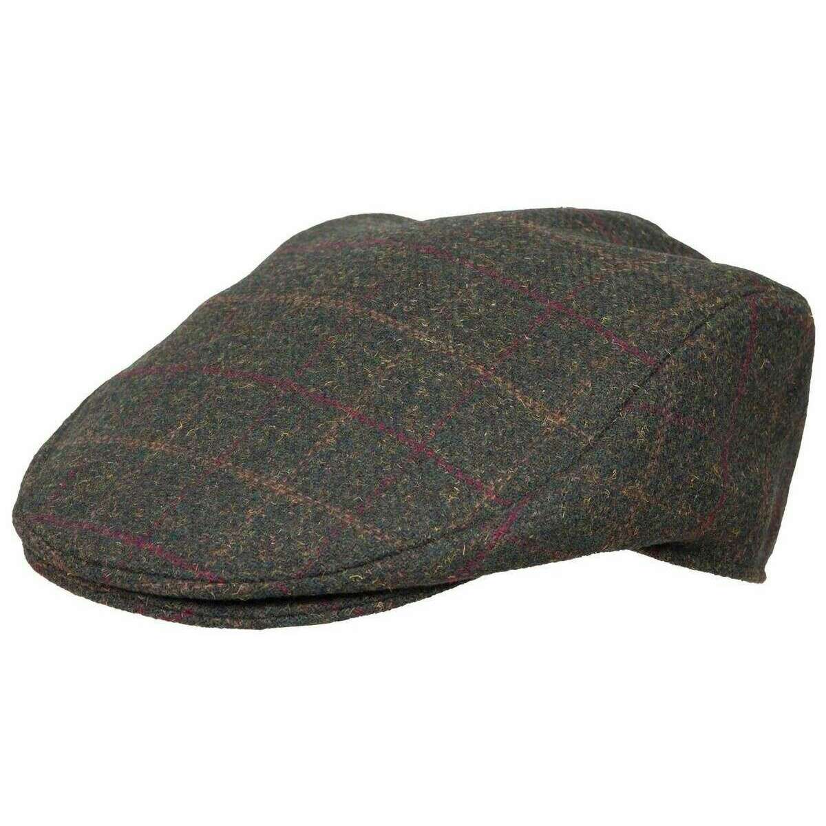 Dents Colliford Check Tweed Schiebermütze – Olivgrün
