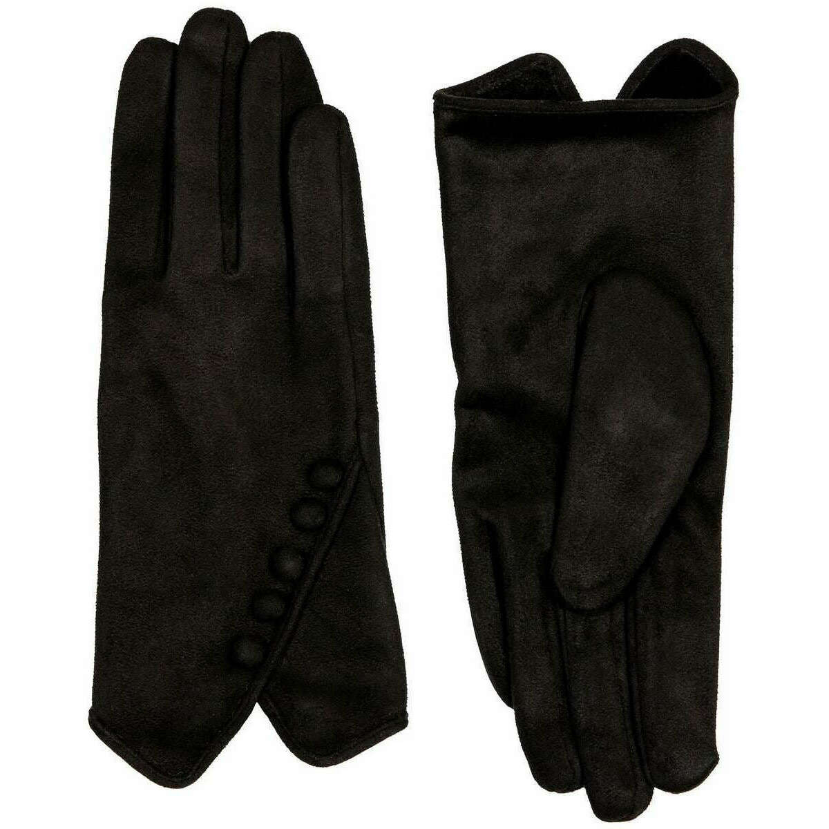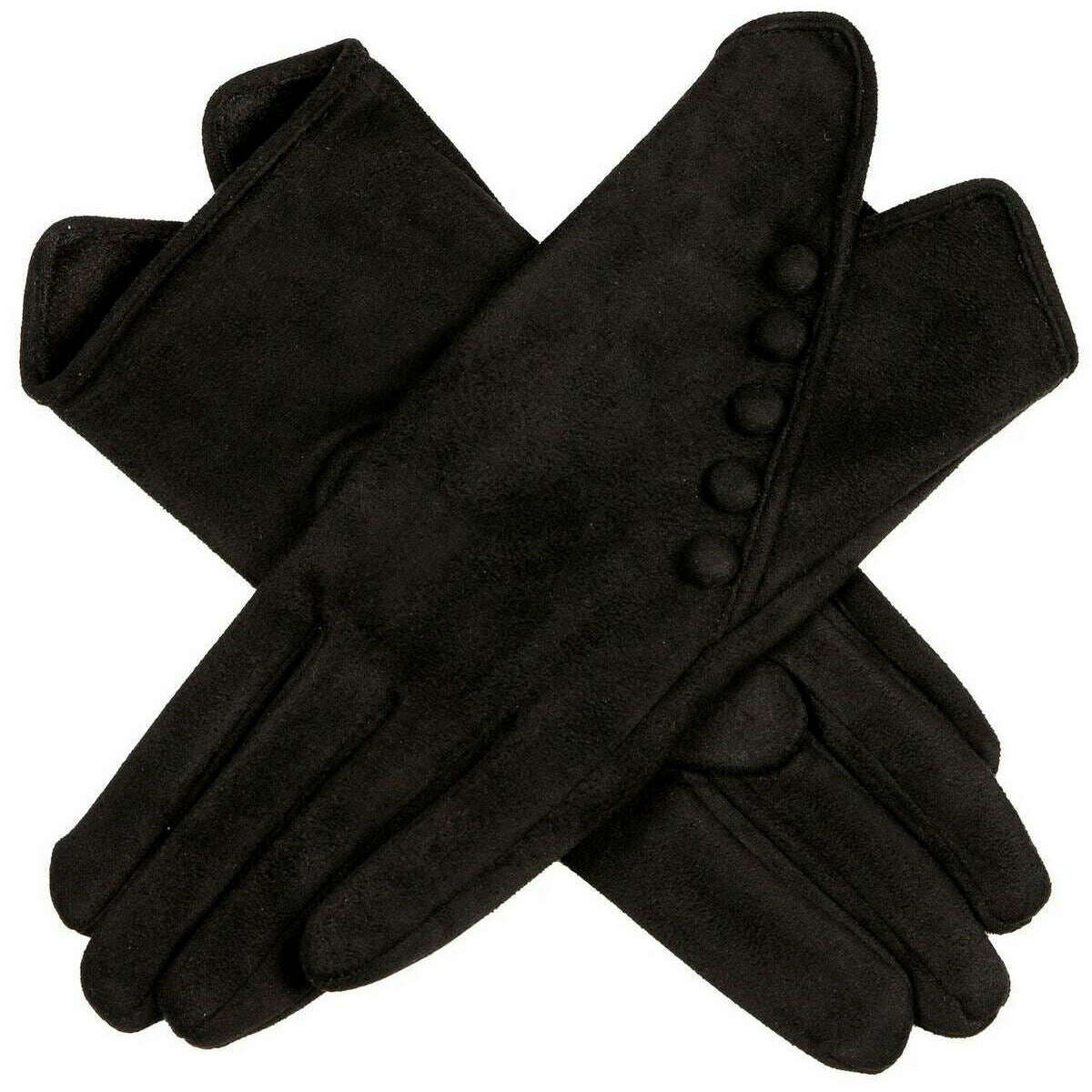 Dents Faux Wildleder Button Handschuhe - Schwarz/Schwarz