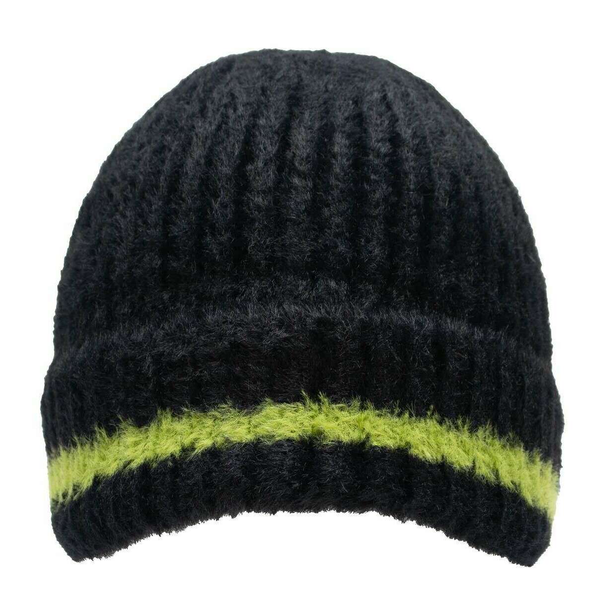 Dents Mütze aus Federgarn – Schwarz/Limettengrün