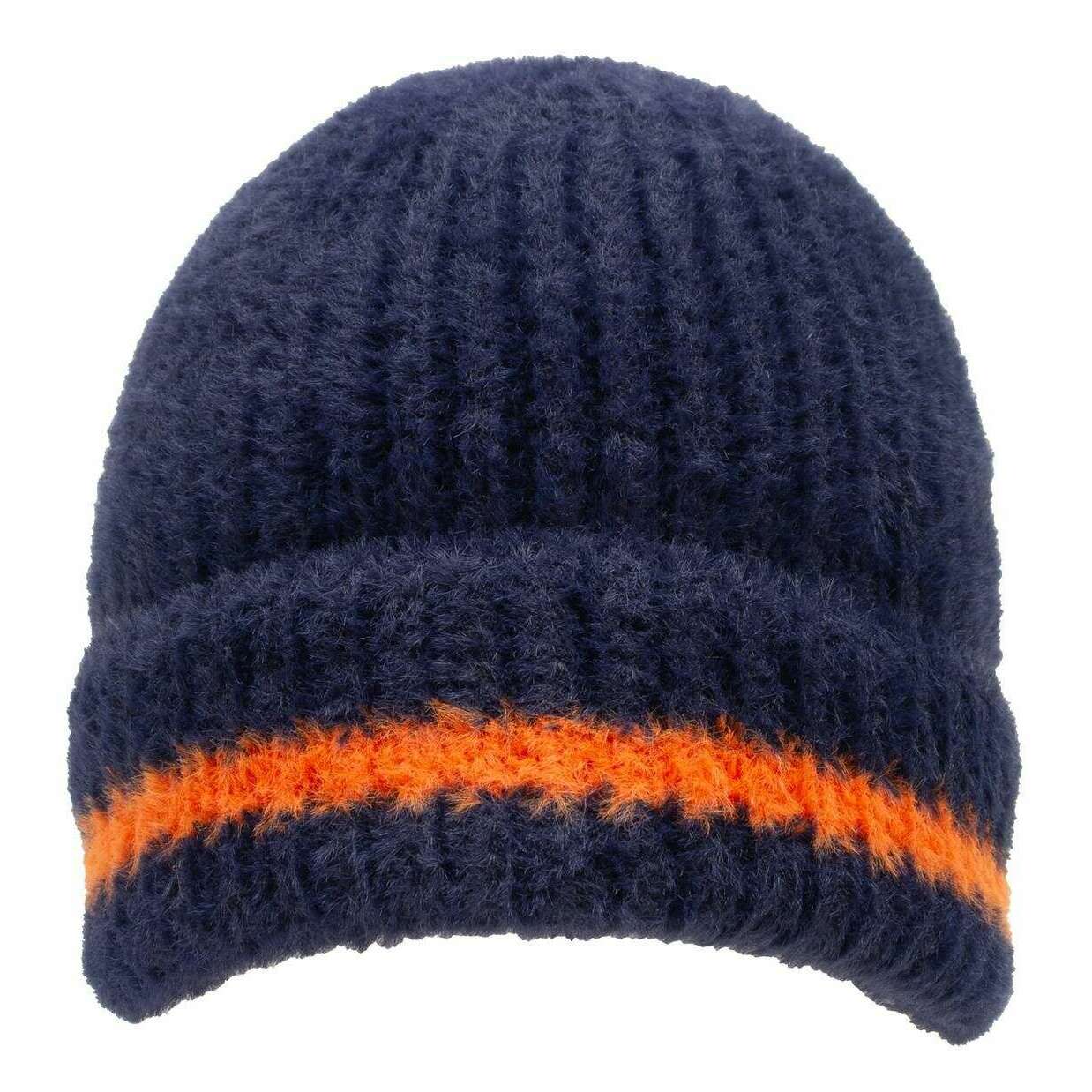 Dents Mütze aus Federgarn – Marineblau/Kürbisorange