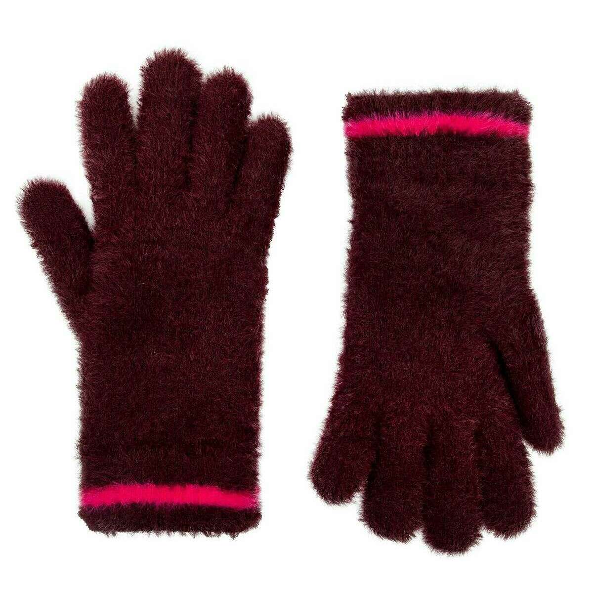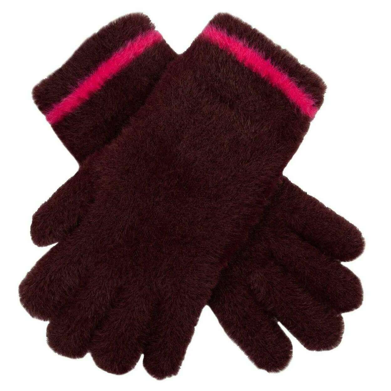 Dents Federgarn -Strickhandschuhe - Burgund/Rosa
