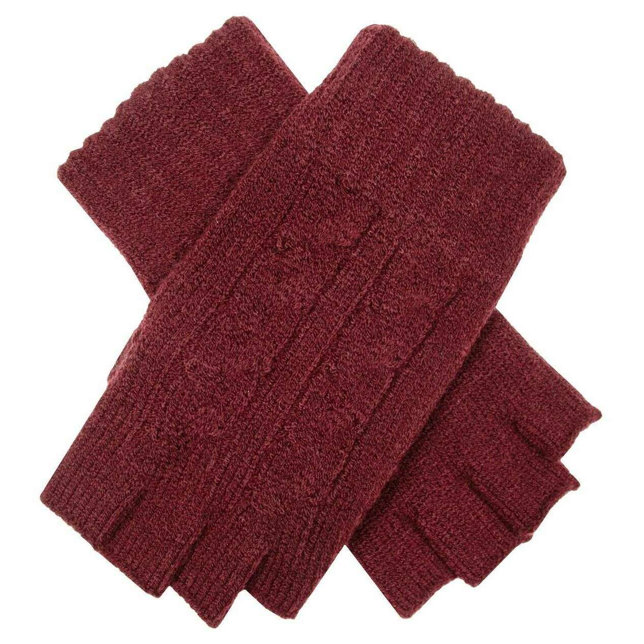 Dents Fingerlose Kabelstrickhandschuhe - Damson Burgund