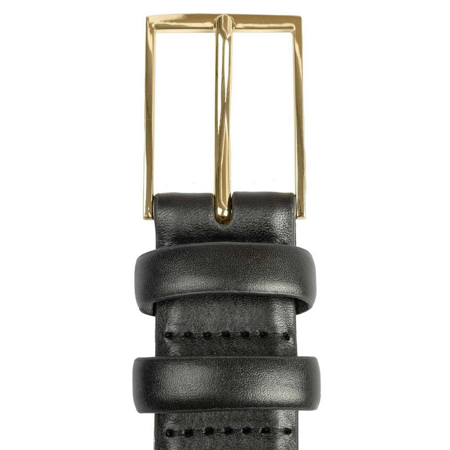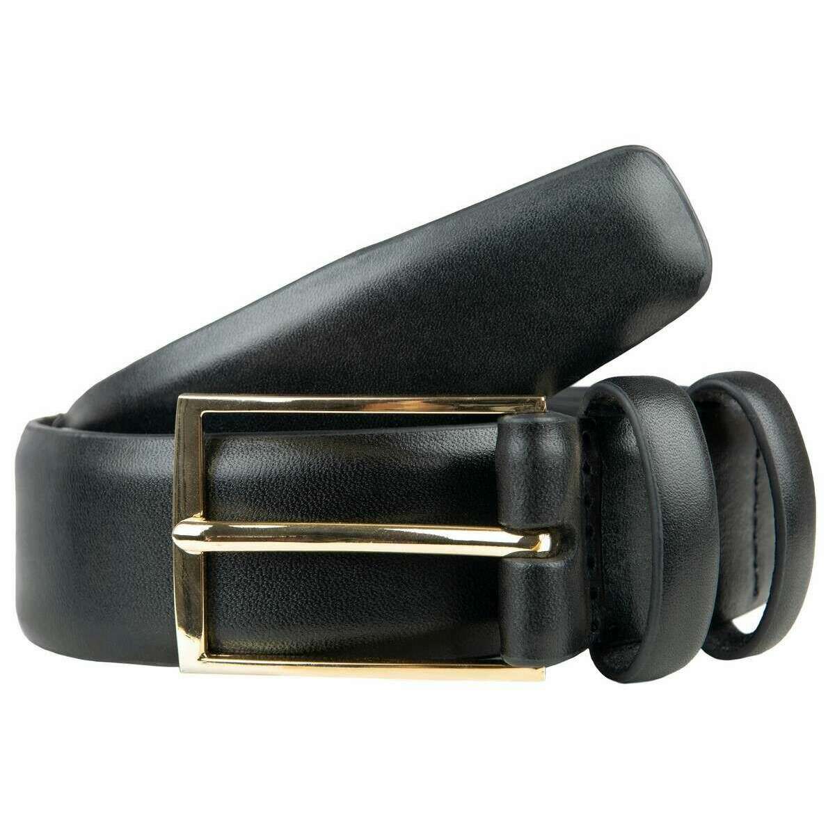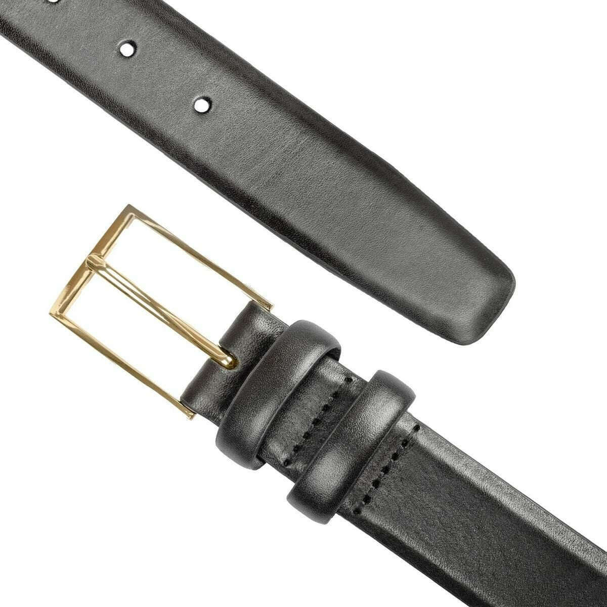 Dieser mit einer goldenen Schnalle gefütterte Herren-Ledergürtel besteht zu 100 % aus Leder, ist in Schwarz gehalten und stammt von der Marke Dents. Alle Gürtel werden komplett mit Dellenetiketten geliefert. Der Dents Der mit Goldschnalle gefütterte Ledergürtel in Schwarz präsentiert sich in einem eleganten und geschmeidigen Gesamtfinish, das seine luxuriöse Qualität unterstreicht. Es verfügt über glatte und elegante Doppellederschlaufen, die mit einer glänzenden goldfarbenen quadratischen Schnalle abgerundet sind. Dieses Stück ist eine großartige Wahl für jeden Anlass, da Sie es lässig oder zu formelleren Anlässen tragen können.