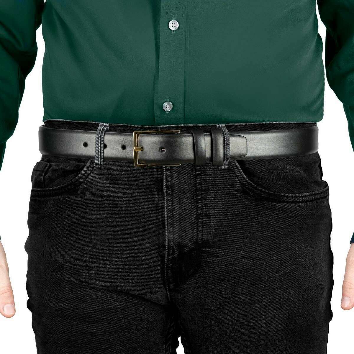 • Abgerundete Kanten, Lederfutter, quadratische Schnalle, doppelter Lederhalter, trapezförmige Gürtelspitze, fünf Löcher, 3,5 cm Breite