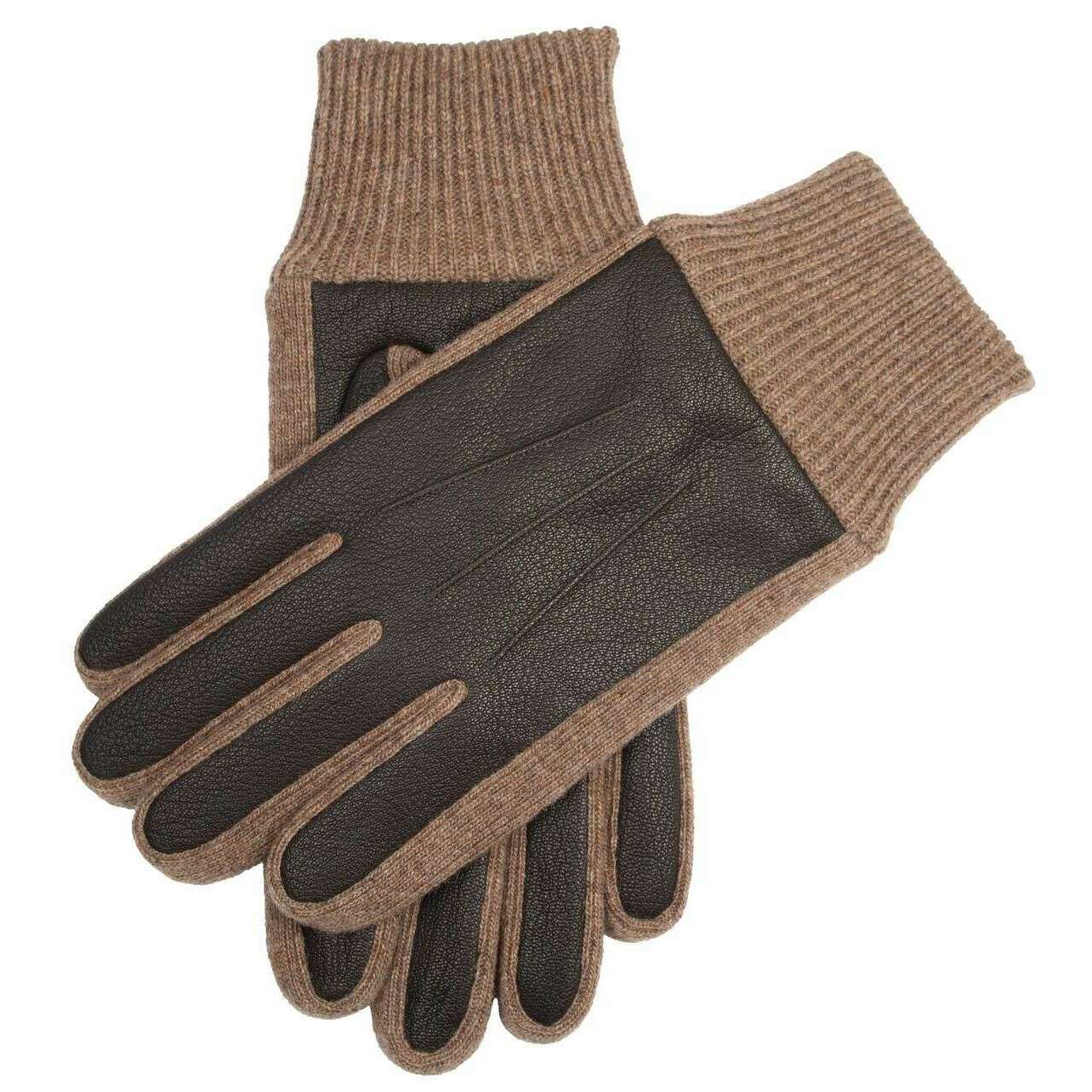 Dents Harrogate Lederhandschuhe mit Strickbündchen – Braun