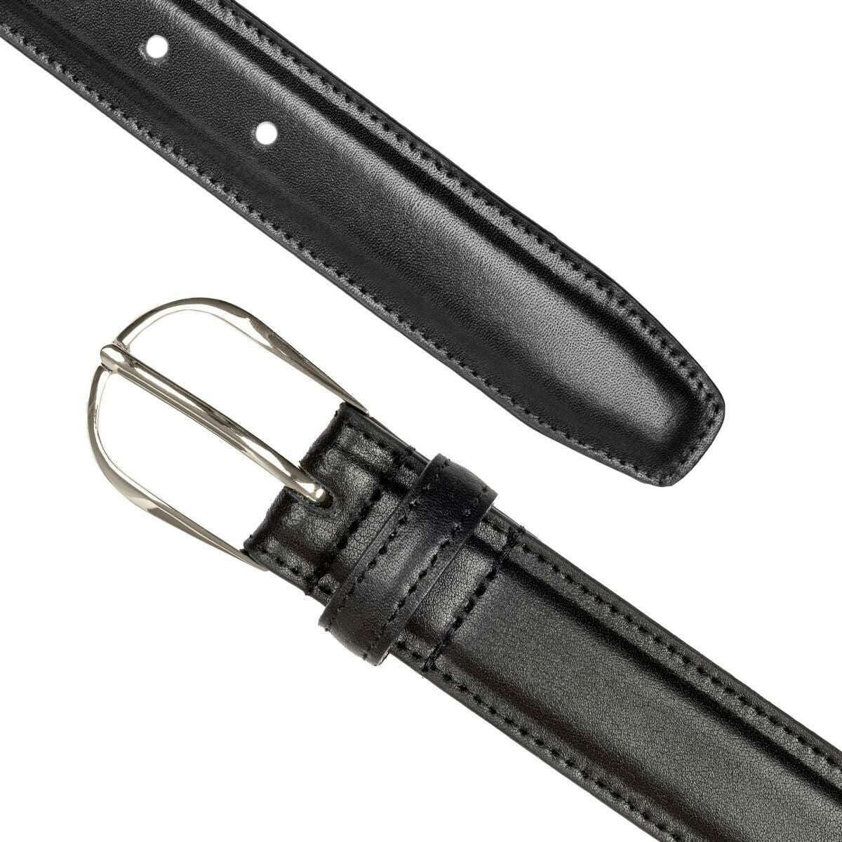 • Genähte Kanten, gefüttert mit Nubuk-Wildleder, ovale Schnalle, nickel- und bleifreie Schnalle, einzelner Lederhalter, trapezförmige Gürtelspitze, fünf Löcher, 3 cm Breite