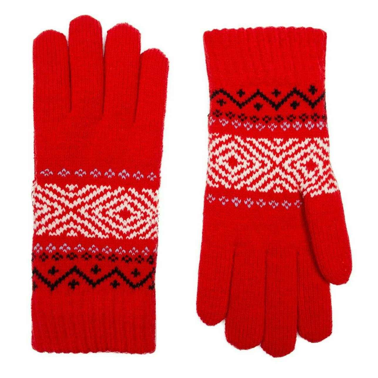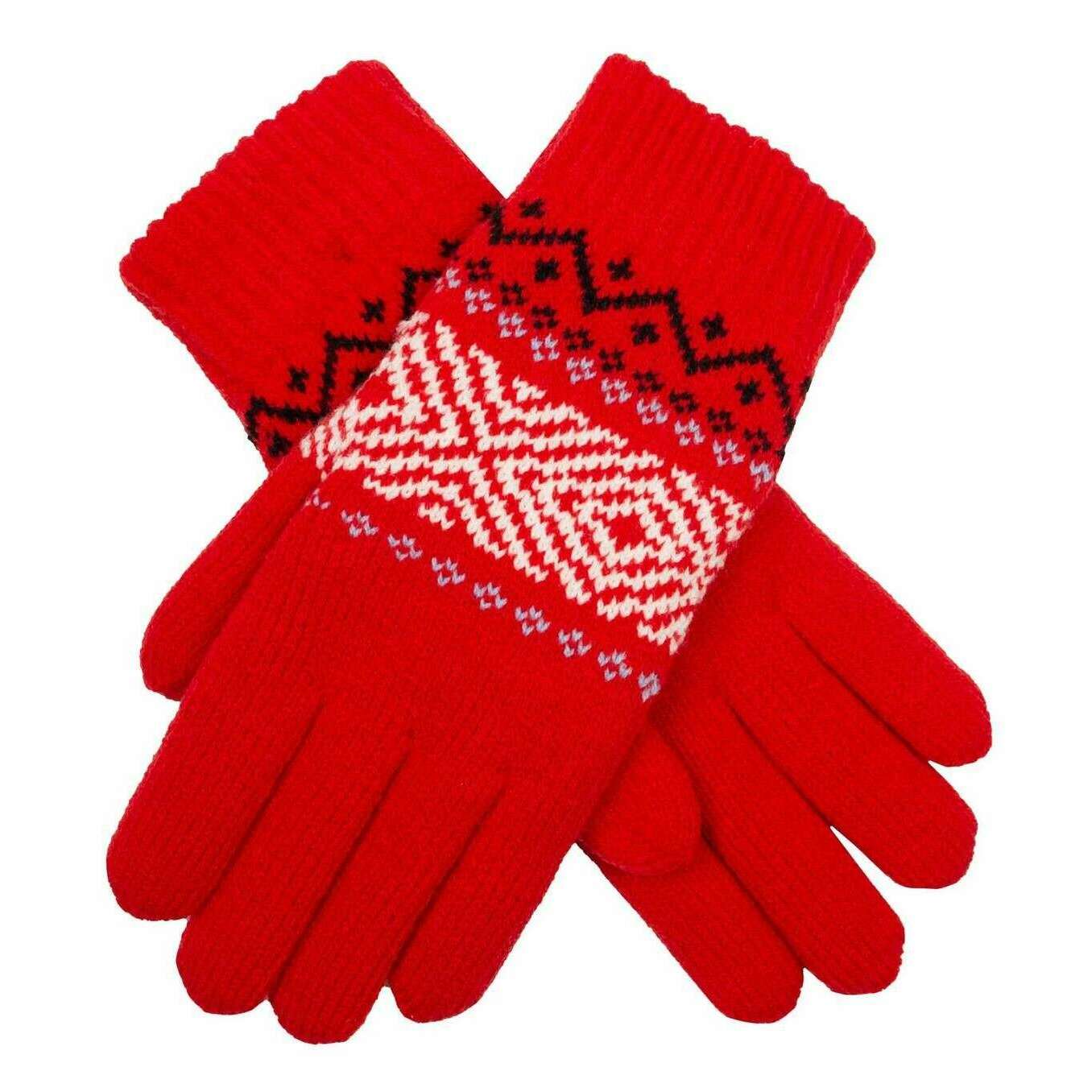 Dents Jacquard Geometrische Strickhandschuhe - Beerenrot