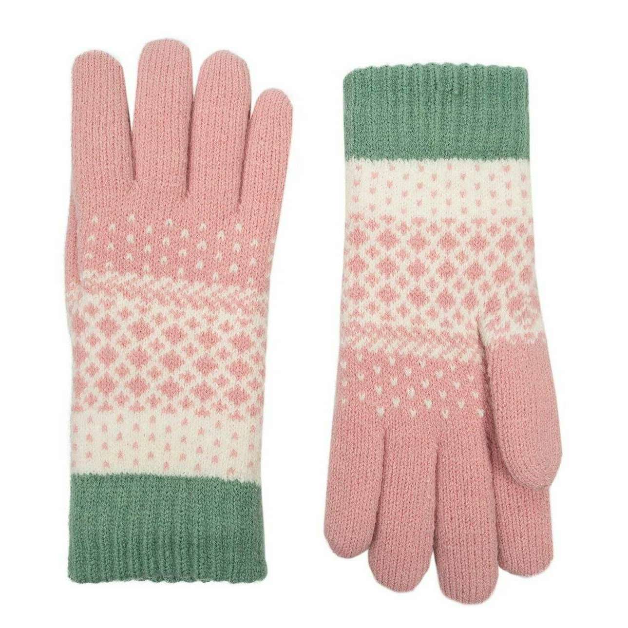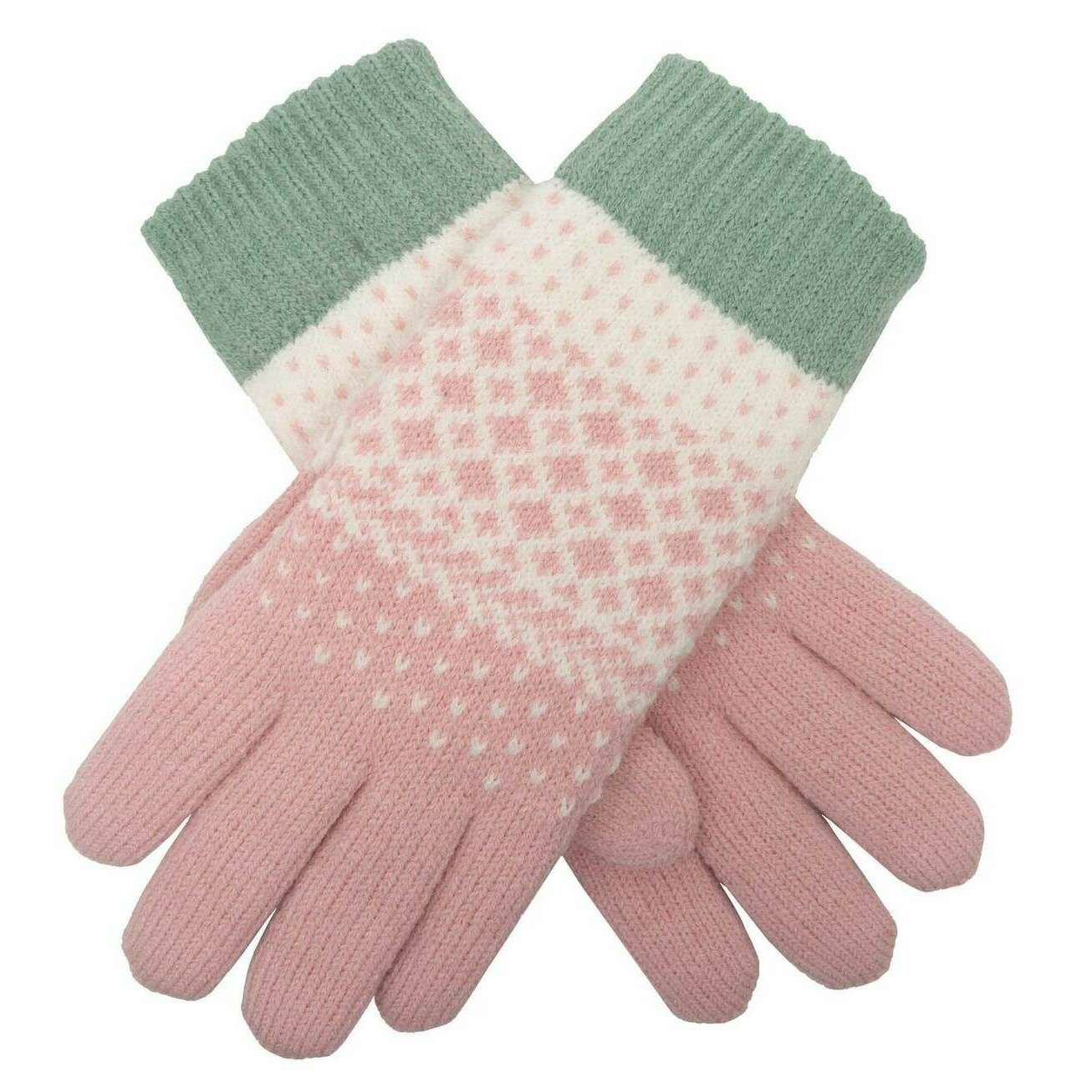 Dents Jacquard Polka Dot Strickhandschuhe - Pulverrosa/Minze Grün