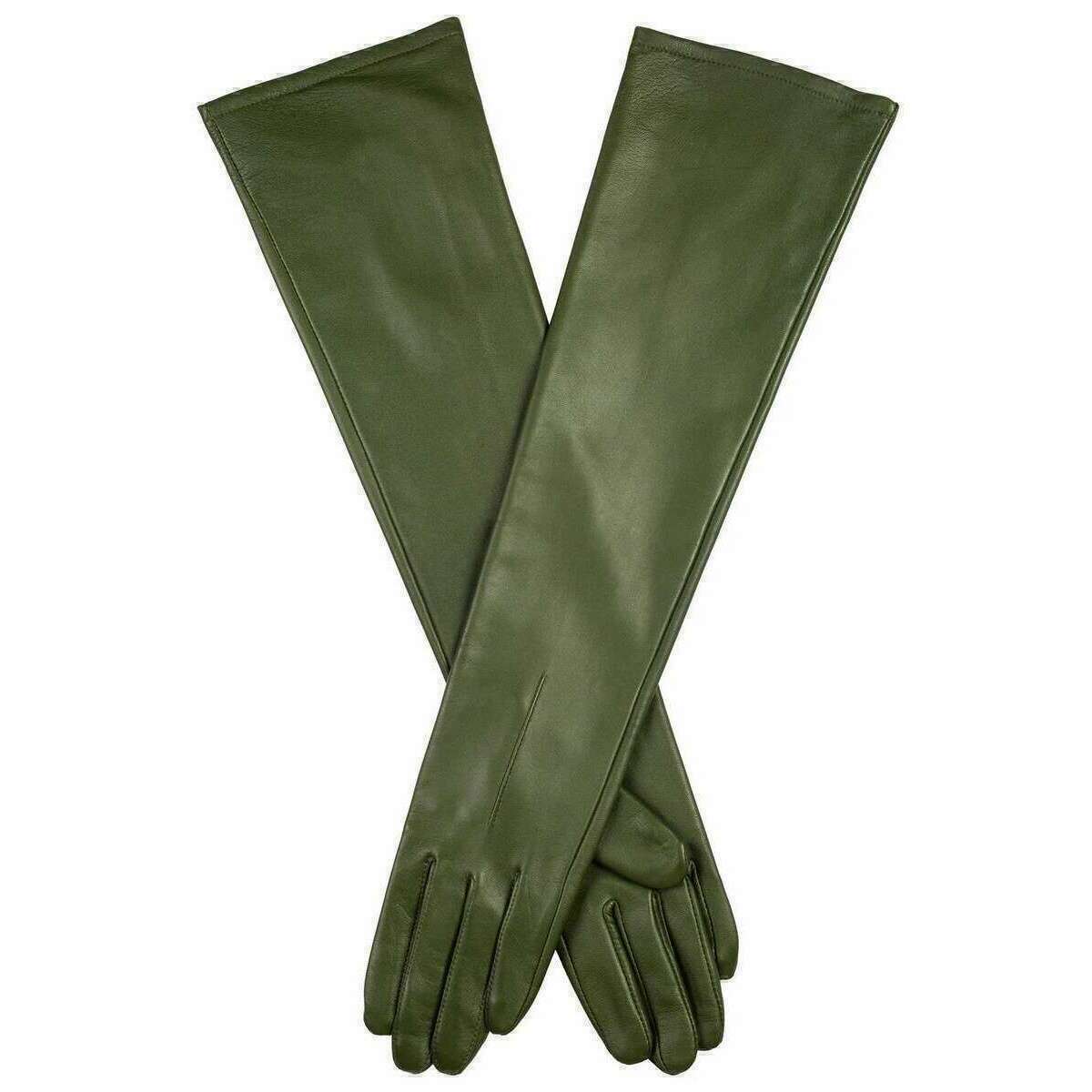 Dents Mia Single Point Long über Ellbogen -Lederhandschuhen - Waldgrün