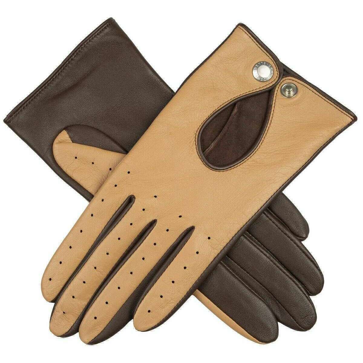 Dents Oulton Touchscreen Leder Fahrhandschuhe - Toffee Beige/Mokka Brown