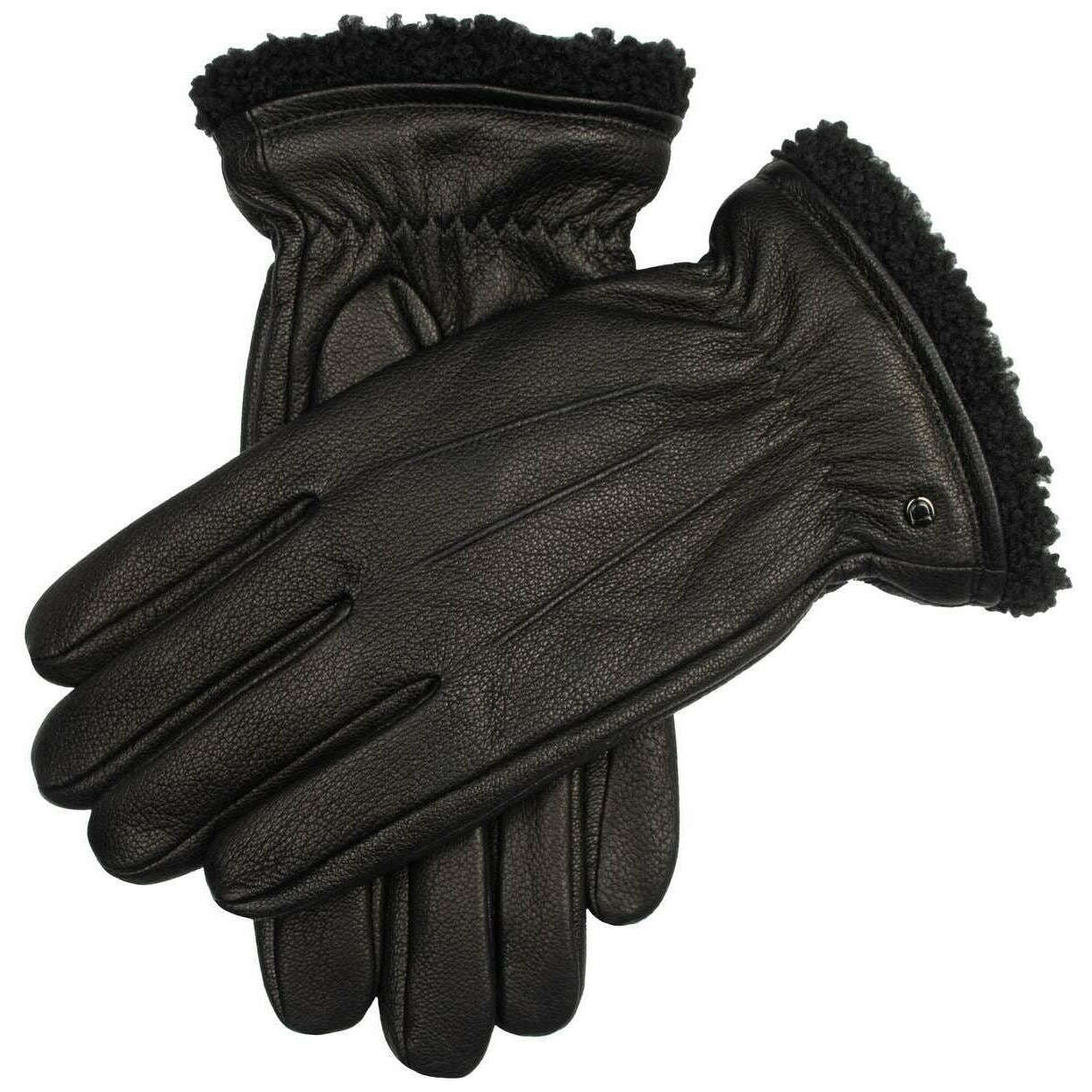 Dents Shrewsbury Fleece-gefütterte Lederhandschuhe – Schwarz