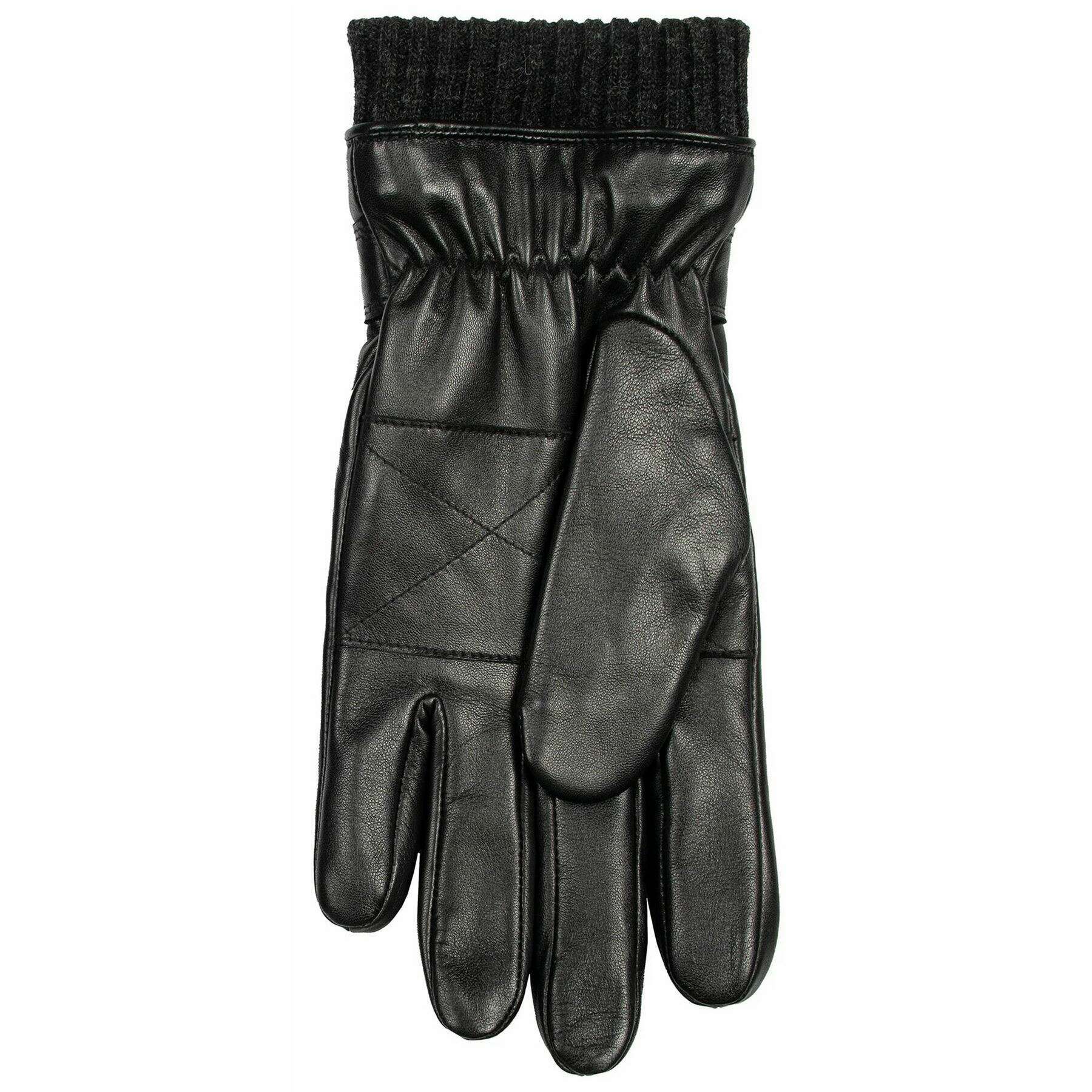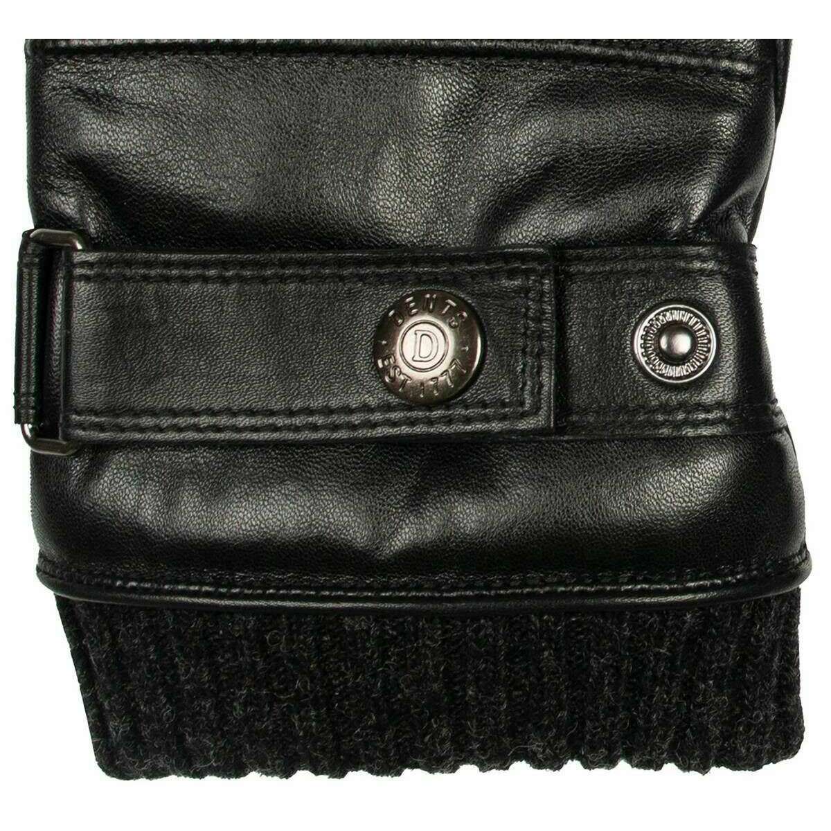 Dents Skipton gestrickte Lederhandschuhe mit Bündchen und Stichdetail – Schwarz